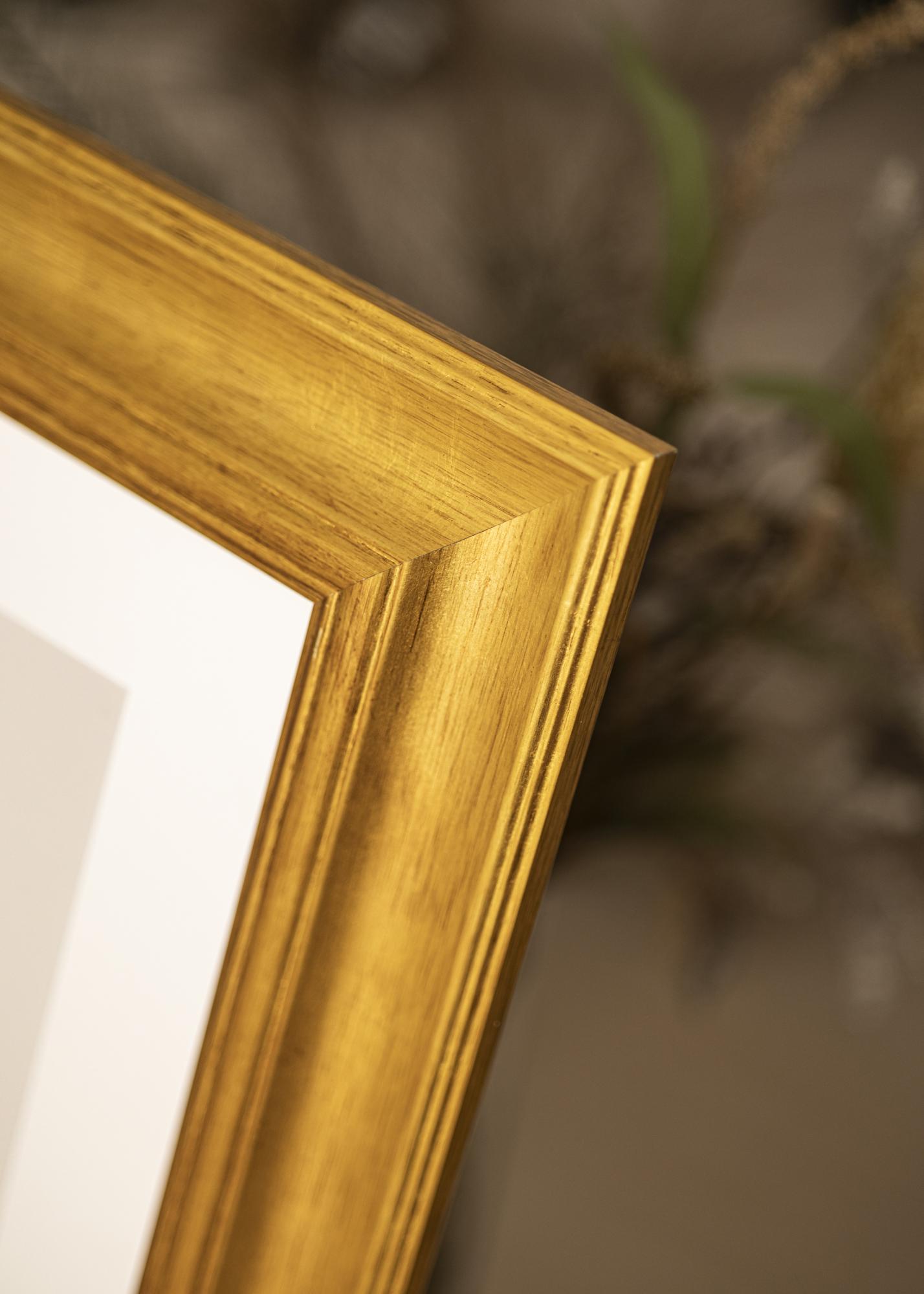 Discover our exclusive photo frame Belfast in light gold, a perfect framing for your most cherished photos. With a wide frame profile of 70 mm and a depth of 30 mm, this photo frame offers an impressive framing that truly captures the eye. It is made of sustainable pine and has an antique gold finish that brings timeless elegance to your home.