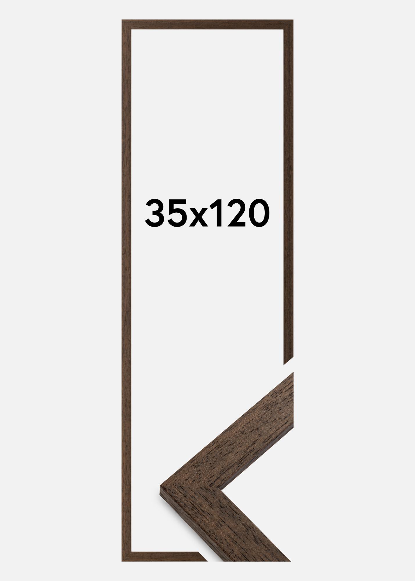 Transform your favorite pictures into artworks with this beautiful photo frame in the size 35x120 cm. This photo frame is made of high-quality wood and has a rustic and natural design in a dark brown finish. The matte surface and clear wood structure provide a warm and organic feel, making it ideal for creating an inviting atmosphere in your home.
