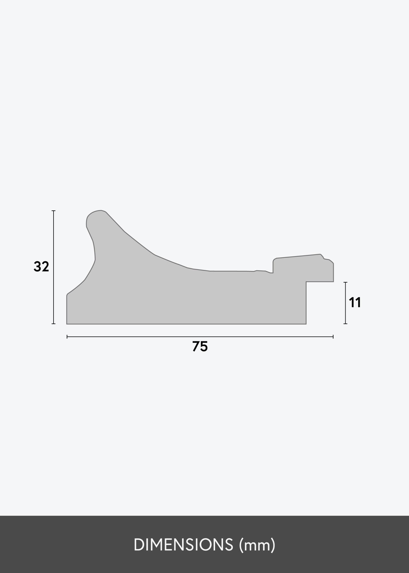 Discover our exclusive Camden Silver photo frame, a perfect combination of elegance and functionality. This photo frame is designed to meet your specific needs, with the option to custom order it in any size. With an impressive 75 mm wide frame strip and a depth of 32 mm, this frame provides a powerful framing for your favorite pictures.