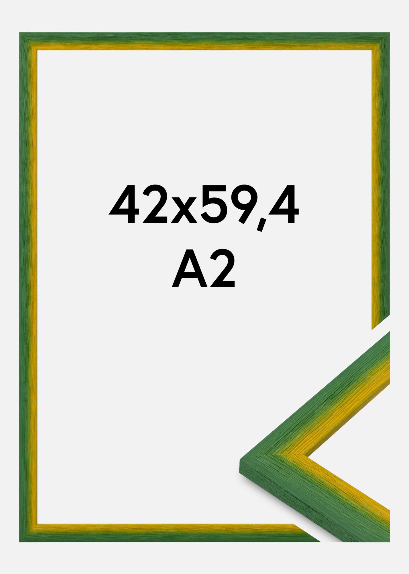 This photo Frame in size 42x59.4 cm is a perfect blend of modern design and natural materials. With a smooth surface in harmonious Green and golden Yellow tones, it highlights the natural texture of the wood in an elegant way. The slim profile, with a Frame moulding measuring 23 mm wide and 13 mm deep, gives a clean and understated look that lets your artwork take centre stage.