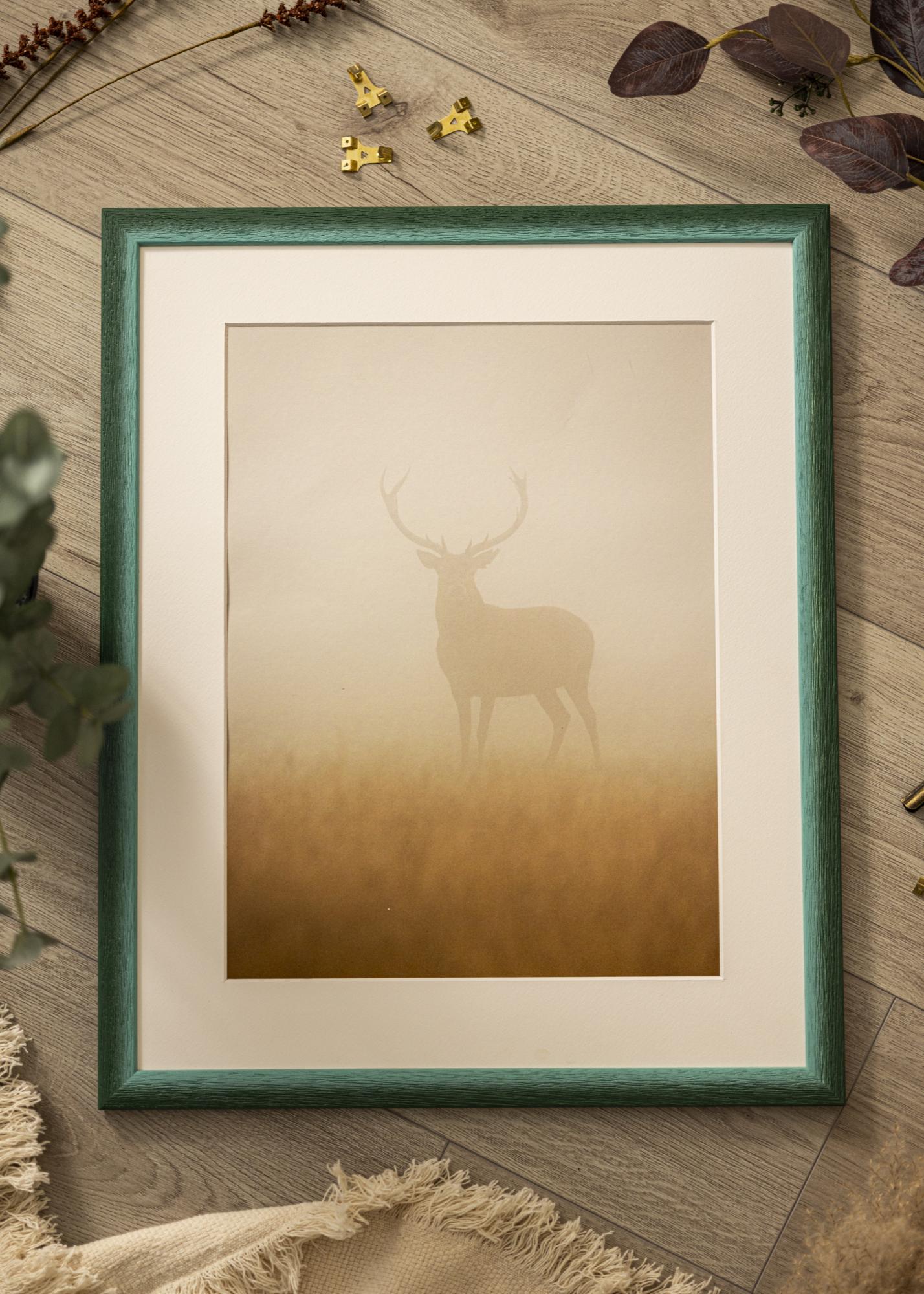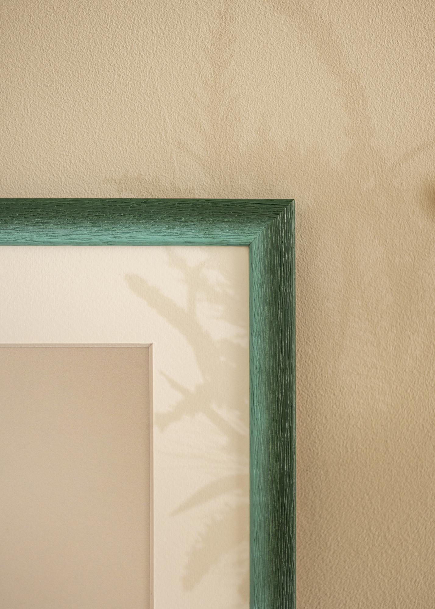 The muted green color has subtle variations that provide a vibrant and natural expression, while the prominent wood grain structure with deep veins creates a rustic feel. The surface has a matte finish that softens the color's intensity and provides a gentle impression, allowing your images to truly take center stage. The narrow profile balances the rustic look with modern simplicity.