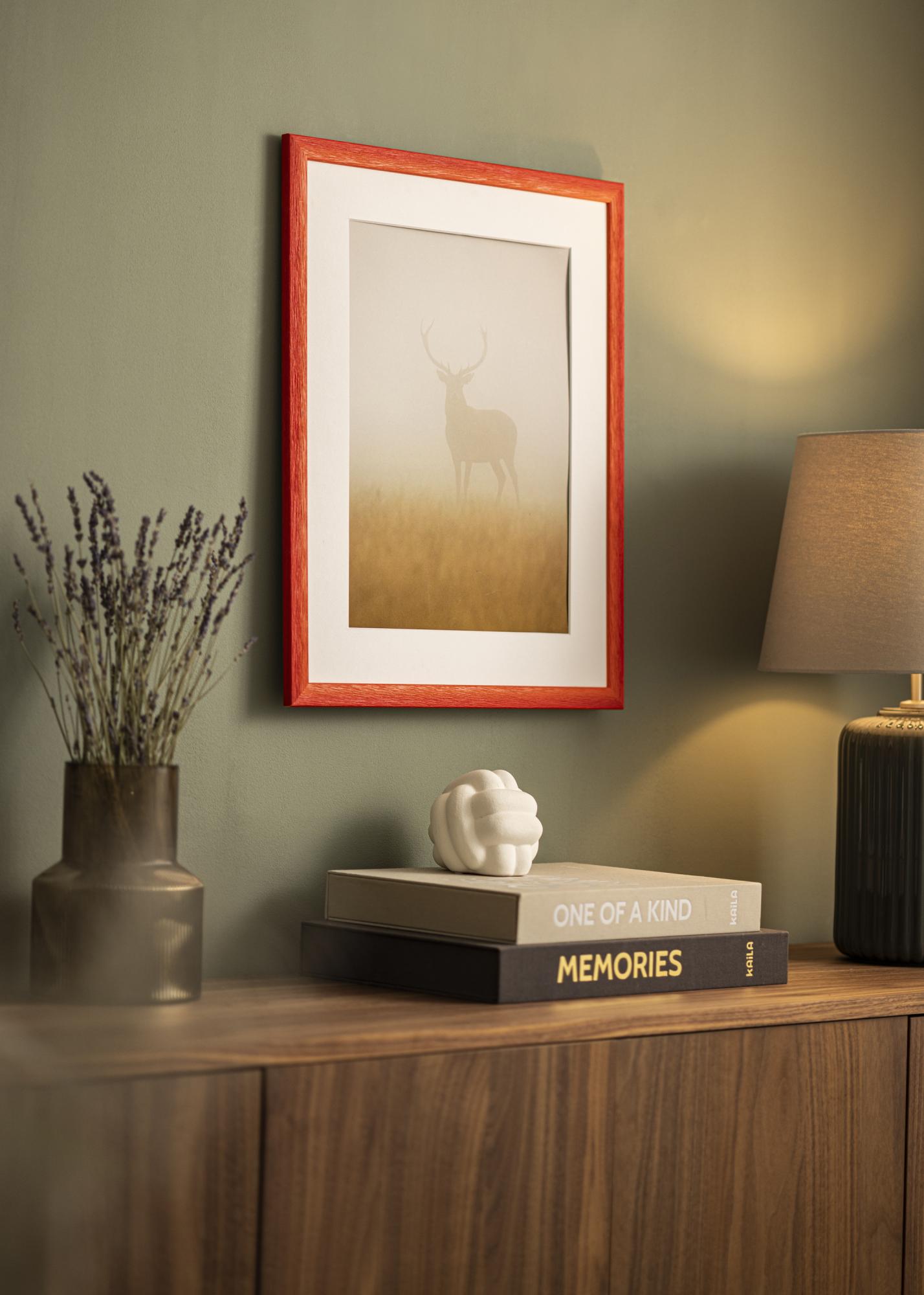 Our custom-made photo frame Cornwall Red is a perfect solution for those seeking a unique and personal framing. With its intense red color and warm undertones, this photo frame becomes an eye-catching element in your home. The subtle shift in color provides a lively expression that catches the eye.