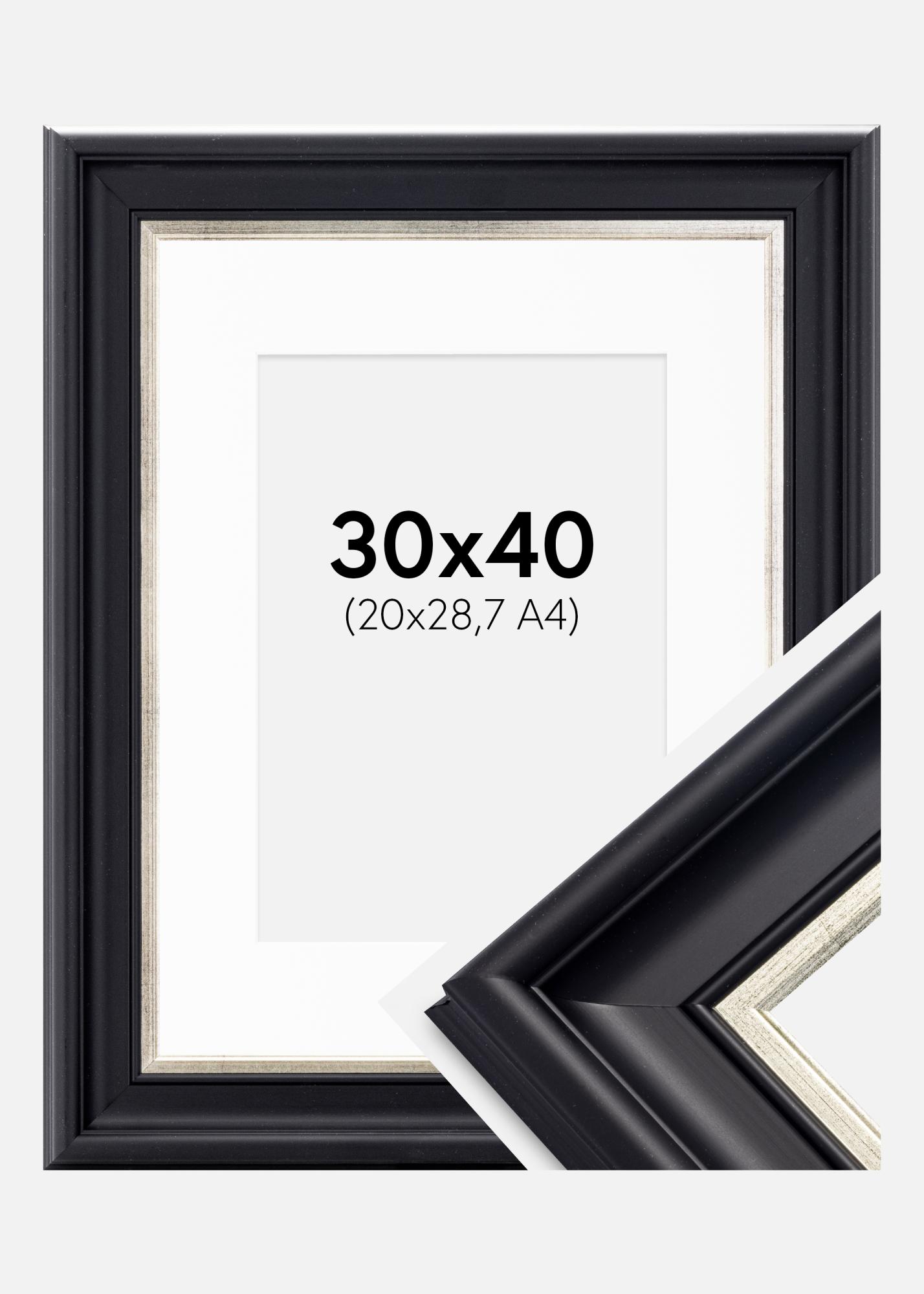 Frame Dalarna Black-Silver 30x40 cm - Picture Mount White 21x29.7 cm (A4)