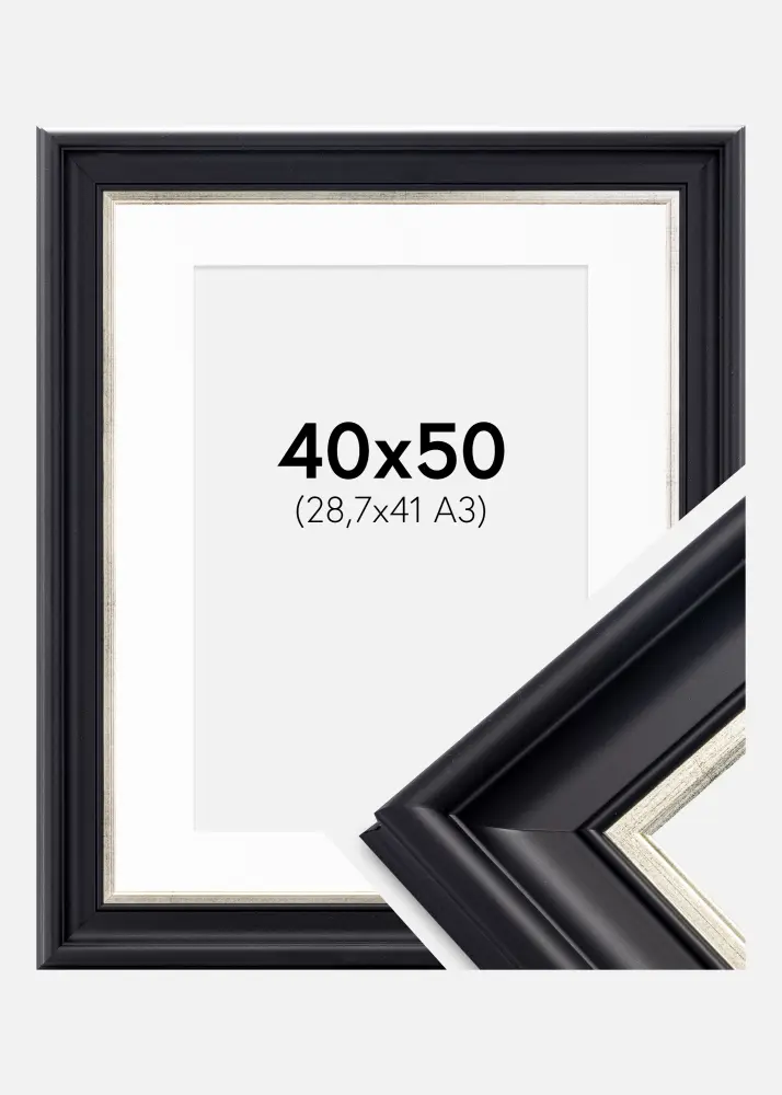 Frame Dalarna Black-Silver 40x50 cm - Picture Mount White 29.7x42 cm (A3)