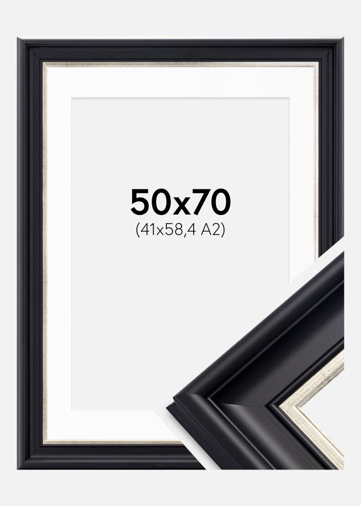 Frame Dalarna Black-Silver 50x70 cm - Picture Mount White 42x59.4 cm (A2)