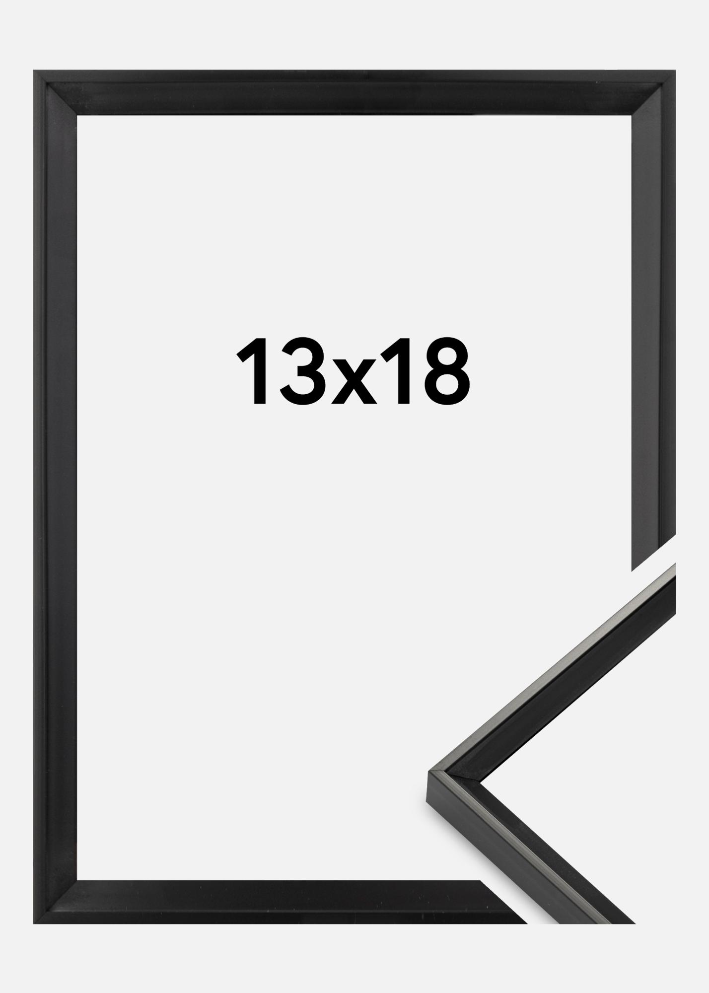 This is a black photo frame with a modern design and a stylistically simple and matte edge, just 10 mm wide. Furthermore, this picture frame has a 45° edge that slopes inwards towards the image, framing the picture fashionably and elegantly. This striking affect is heightened by the edge's 18 mm depth, which also gives the picture frame a very robust feeling.