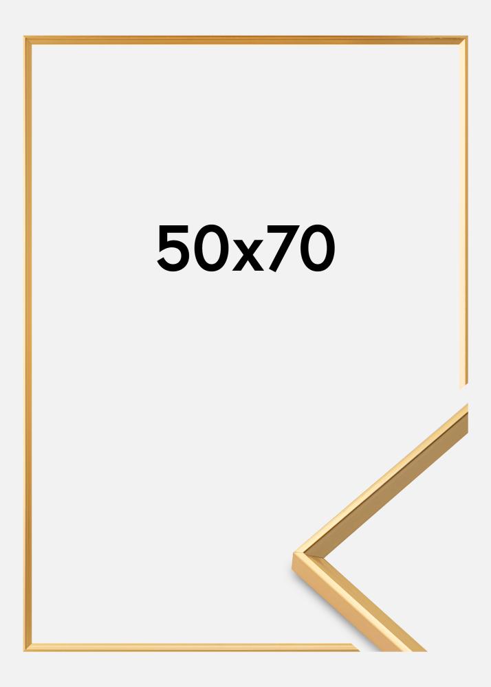 Give your walls a touch of elegance with our glossy gold photo frame. With a size of 50x70 cm, this picture frame is perfect for showcasing your favorite artwork or family photos. The thin frame border of only 10 mm provides a sleek and modern feel to your home.