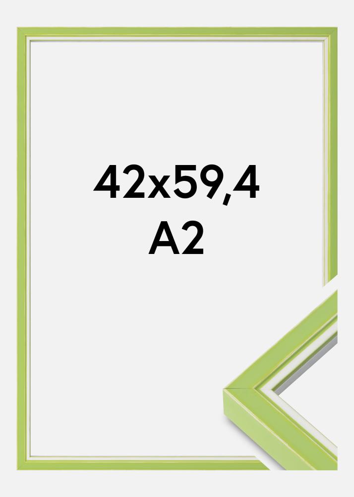 Give your walls a fresh and modern feel with this stylish 42x59.4 cm (A2) photo frame. The light green and white color combination adds a playful touch that complements your pictures or artwork in a unique way. With a frame width of 20 mm, this picture frame creates an elegant framing without taking over.