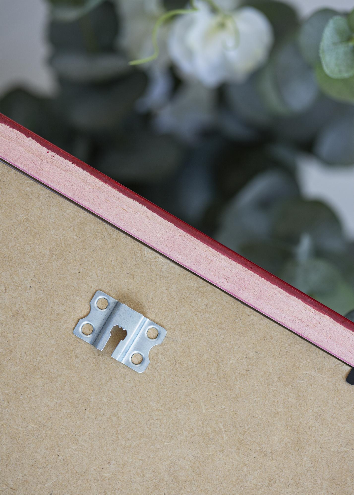 The picture Frame is made of wood and has an elegant finish that fits beautifully in both modern and colourful interiors. The rich Red colour adds a sophisticated touch to the room, whether you choose to use it for photographs or posters. The Frame is equipped with metal hangers on the back, making it easy to hang both horizontally and vertically.