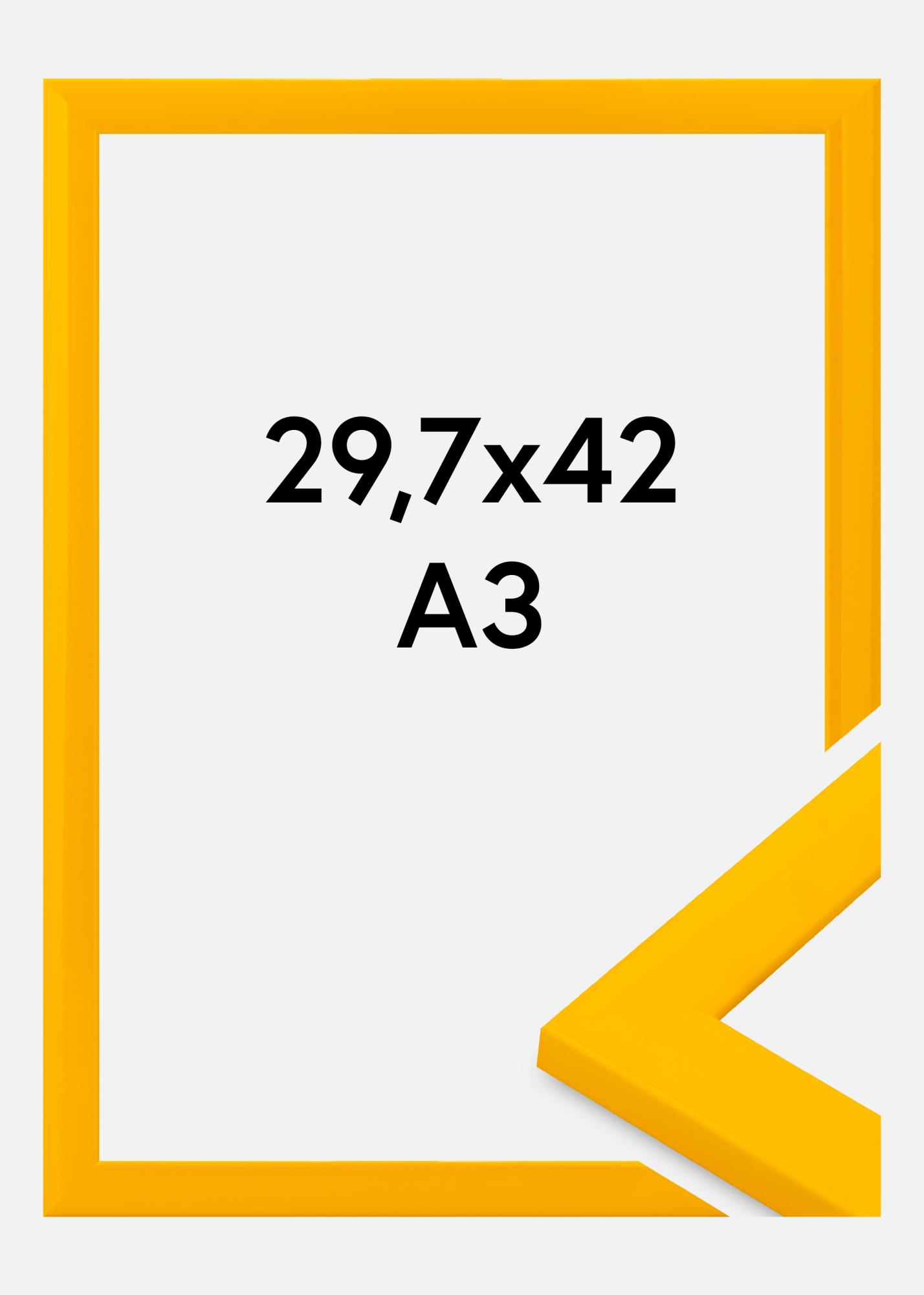 This photo Frame in a vibrant Yellow shade is perfect for giving your pictures a lively and modern look. With a size of 29.7x42 cm, it fits A3 motifs beautifully, making it ideal for both photographs and posters. The glossy surface and slim profile give the Frame a minimalist appearance that lets your motif take centre stage.
