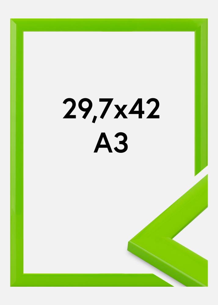 This photo Frame in size 29.7x42 cm is perfect for highlighting your favourite images. With a modern and stylish design, it combines a smooth, glossy surface with a lively Green tone that brings a fresh touch to the room. The slim profile and sharp corners add to a minimalist look, letting your artwork truly take centre stage.