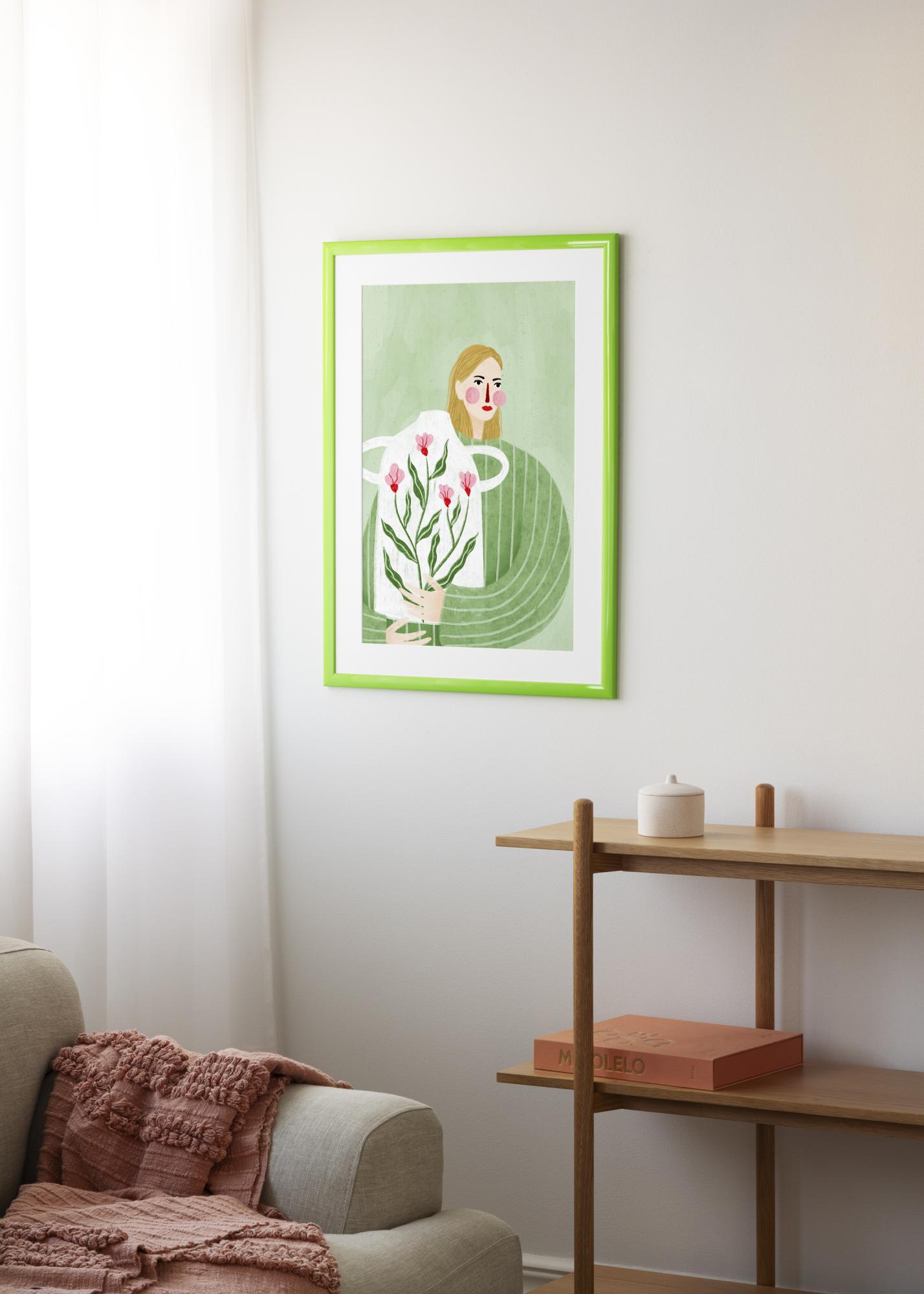 The picture Frame features a 23 mm wide frame edge and a depth of 13 mm, making it both sturdy and elegant. Made from wood, it combines durability with aesthetics. The glossy finish fits beautifully in modern, Scandinavian, or playful interiors, and works just as well for photographs as for posters.