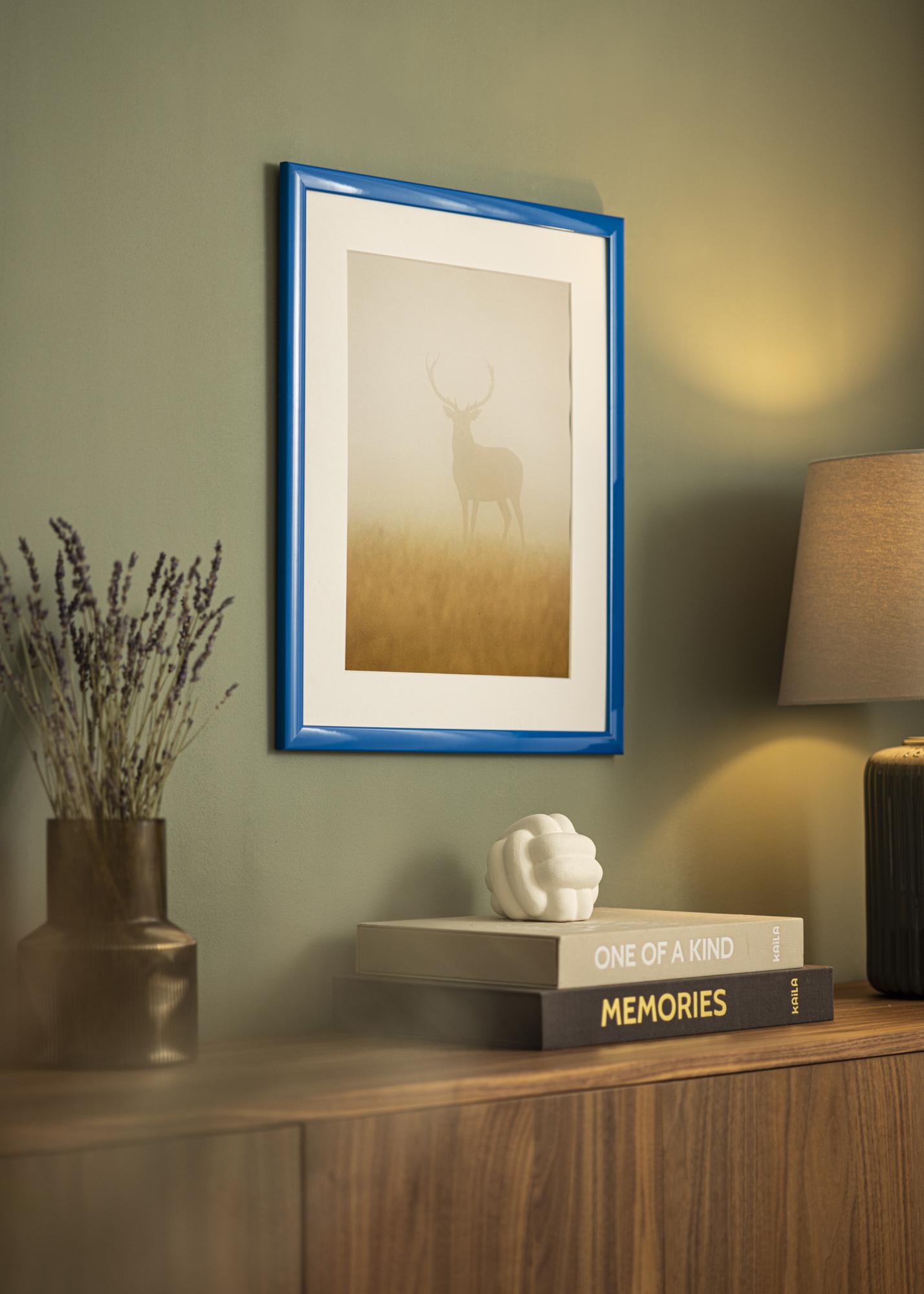 Discover our custom-made photo frame Dorset Blue, an elegant and modern photo frame manufactured directly in our own framing workshop. With its deep blue color and high-gloss finish, this frame offers a reflective and vibrant surface that truly catches the eye. The smooth surface enhances the intensity of the color and gives a sleek and modern expression to your pictures.