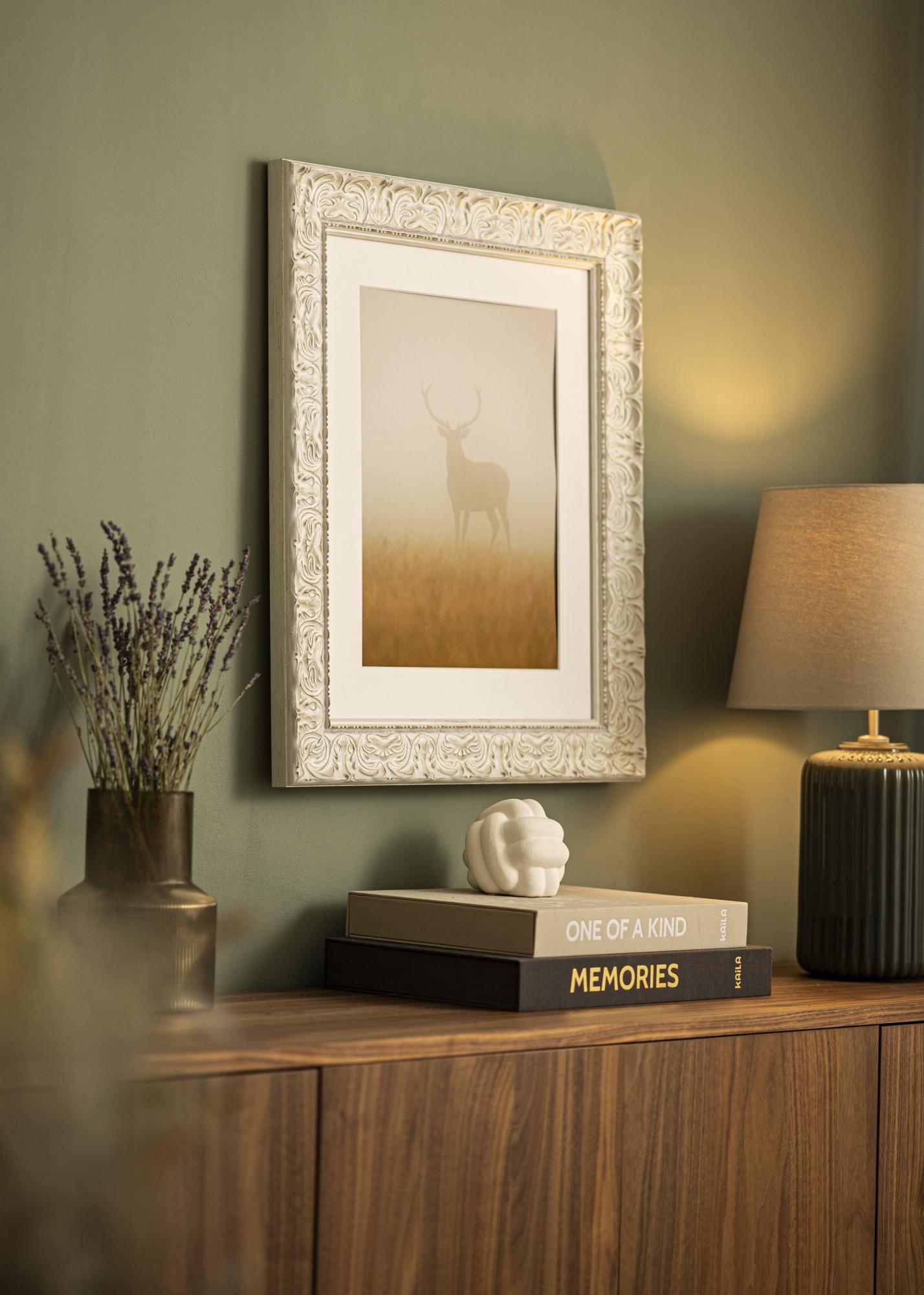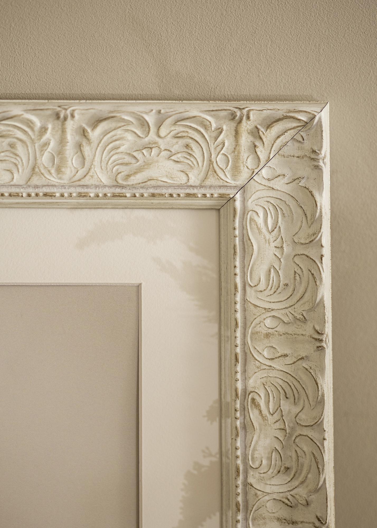 Frame Durham White is an elegant and classic photo frame that gives your pictures a timeless framing. With its antique white color and decorative relief, it creates a sophisticated atmosphere in any room. The subtly worn finish gives the photo frame a unique character and enhances its classic expression, making it a perfect choice for both modern and traditional interiors.