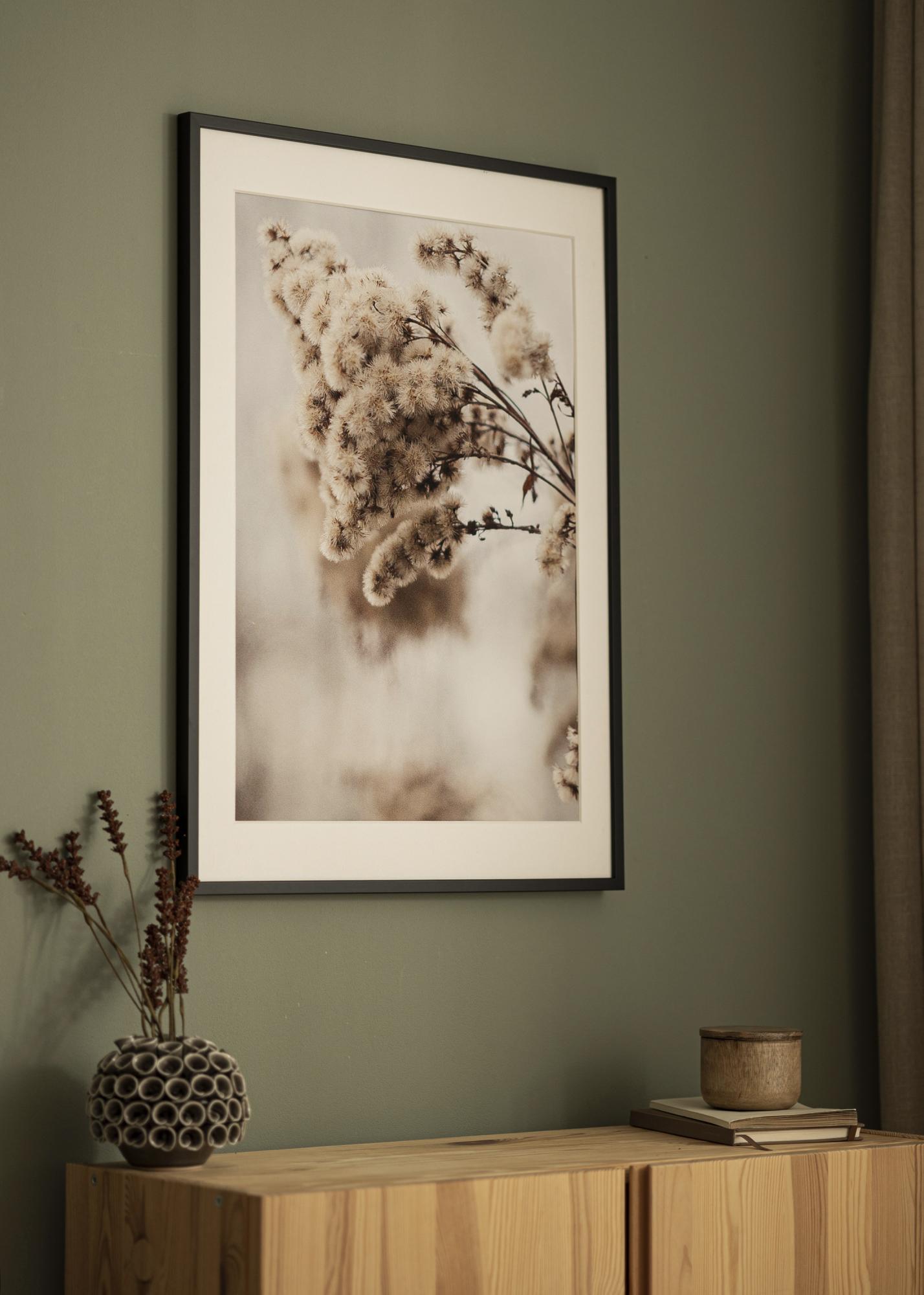 Give your walls a stylish touch with this elegant black photo frame in the size 50x50 cm. Made of genuine pine, this picture frame offers a sturdy construction with a frame border measuring 12 mm in width and a depth of 20 mm, giving a distinct and modern profile.