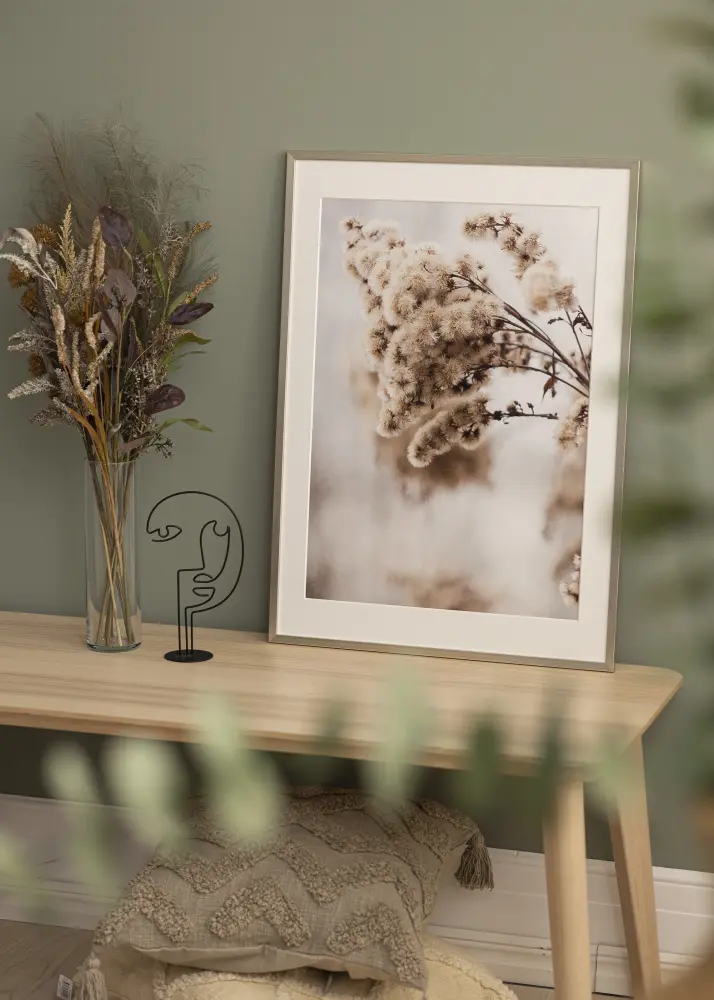 Transform your memories into artworks with our elegant silver frame, complete with a stylish white passepartout. This frame is perfect for showcasing your favorite pictures in the size 11x13 inches, providing them with a sophisticated framing that draws attention.