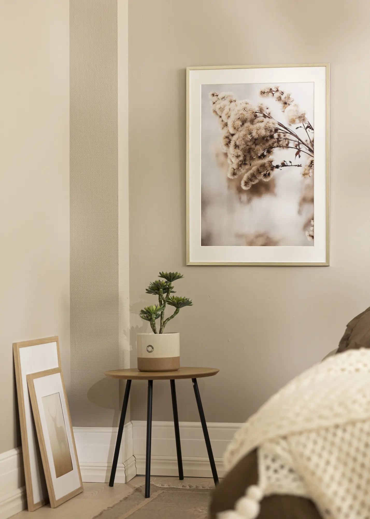 The frame is equipped with metal hangers on the back, making it easy to hang both horizontally and vertically. With outer dimensions of 41.6x46.6 cm, this frame becomes an impressive detail on your wall. Remember to remove the protective film from the acrylic glass before using the frame for the best results.