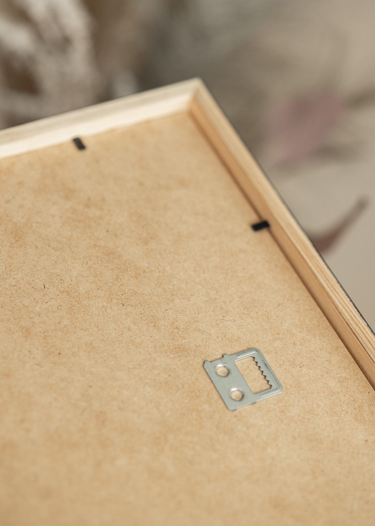 A black picture frame is both elegant and flexible as black matches brilliantly with all kinds of images! Whether you're framing wedding photos or your child's drawings, this quality painted pine frame is a great choice. The frame is fitted with real glass and has a profile that’s 12 mm wide and 22 mm deep.