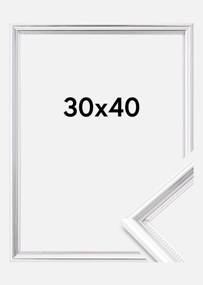 Give your walls a touch of elegance with this silver-colored photo frame in the size 30x40 cm. With its profiled frame list of 20 mm and a depth of 17 mm, this picture frame combines classic design with modern details. The glossy surface enhances the retro style of the frame and makes it a eye-catching addition to any room.