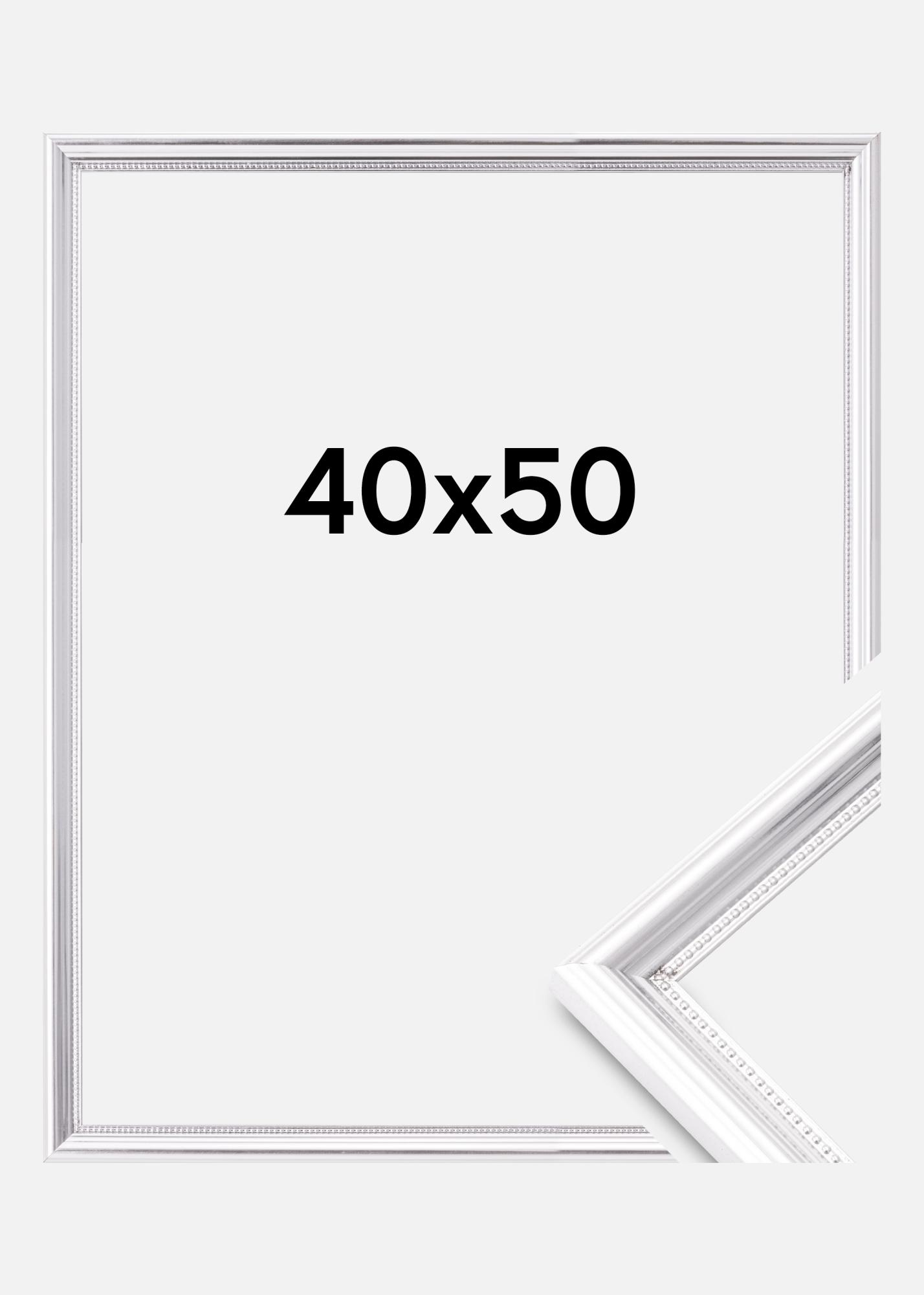 Give your walls a touch of elegance with this silver-colored photo frame in the size of 40x50 cm. With its profiled frame moldings of 20 mm and a depth of 17 mm, this picture frame combines classic design with modern details. The glossy surface enhances the frame's retro style and makes it a striking addition to any room.