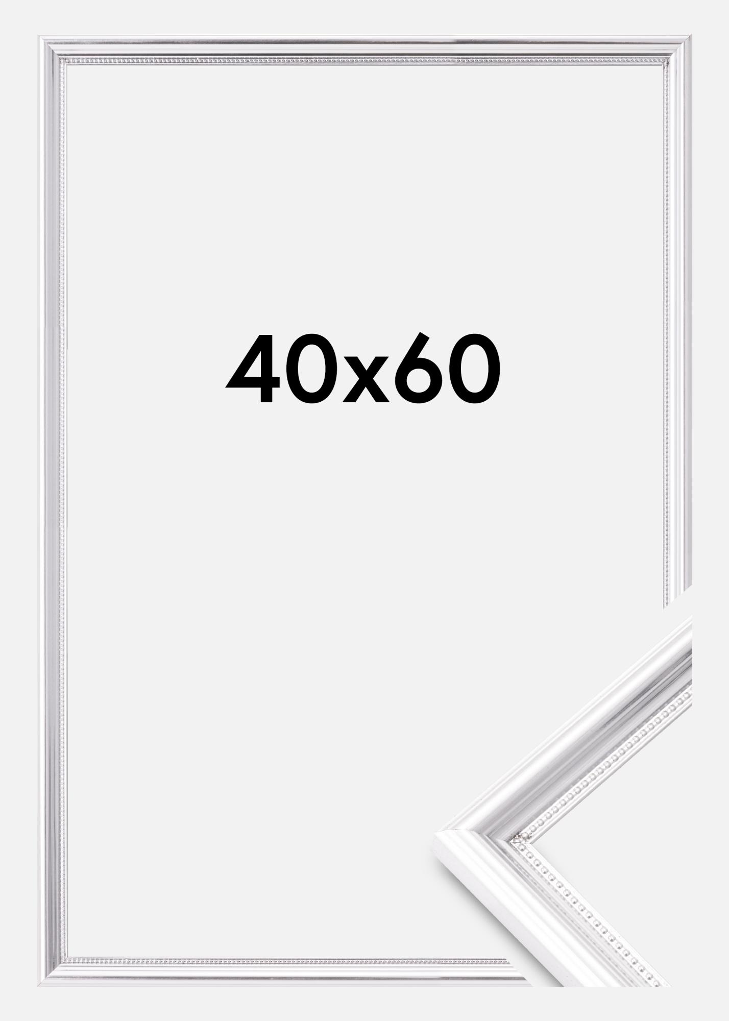 Add a touch of elegance to your walls with this silver-coloured photo frame in the size 40x60 cm. With its profiled frame border of 20 mm and a depth of 17 mm, this picture frame combines classic design with modern details. The glossy surface beautifully reflects light and adds a luxurious feel to your chosen photograph or artwork.