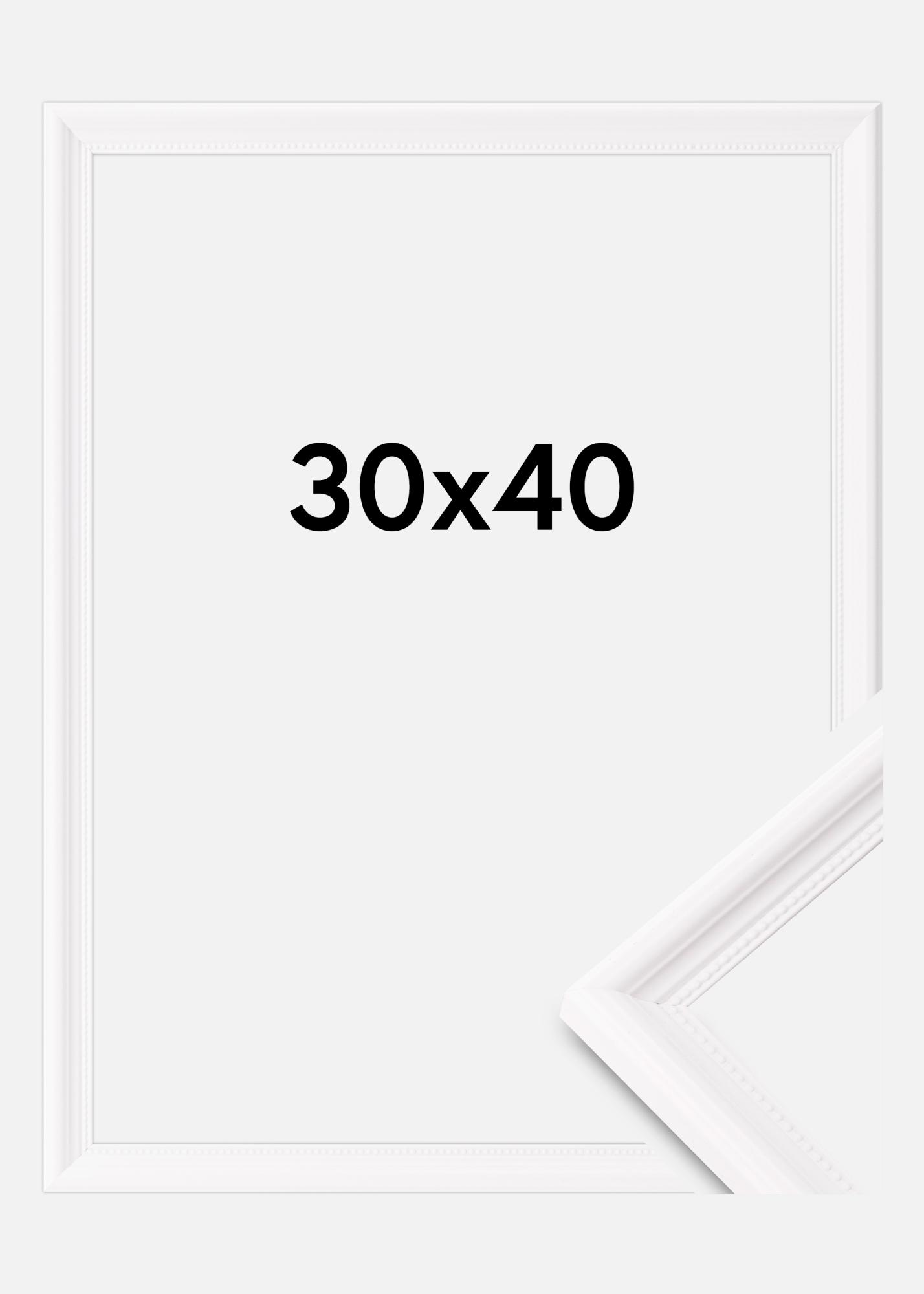 Discover the elegant and timeless design of our white photo frame in the size 30x40 cm. This picture frame is perfect for showcasing your favorite photos or artwork with its profiled retro-style frame. With a width of 20 mm and a depth of 17 mm, the frame adds a distinct and sophisticated feel to your space.