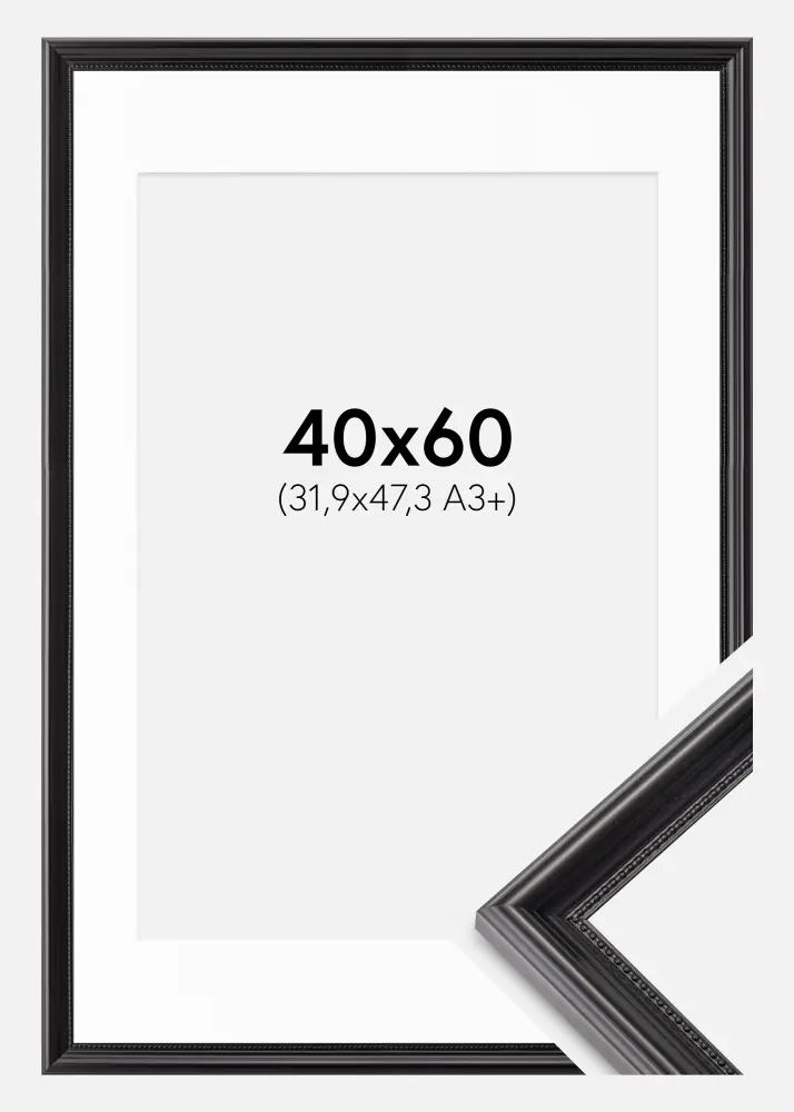 Frame Gala Black 40x60 cm - Picture Mount White 32.9x48.3 cm (A3+)
