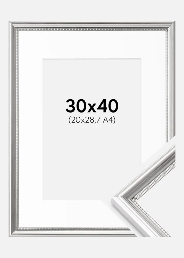 Frame Gala Silver 30x40 cm - Picture Mount White 21x29.7 cm (A4)