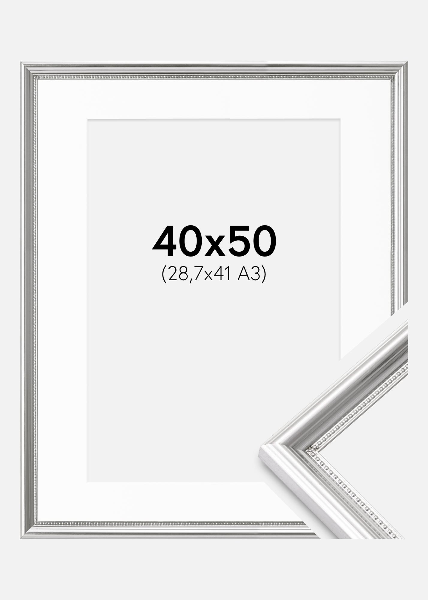 Frame Gala Silver 40x50 cm - Picture Mount White 29.7x42 cm (A3)