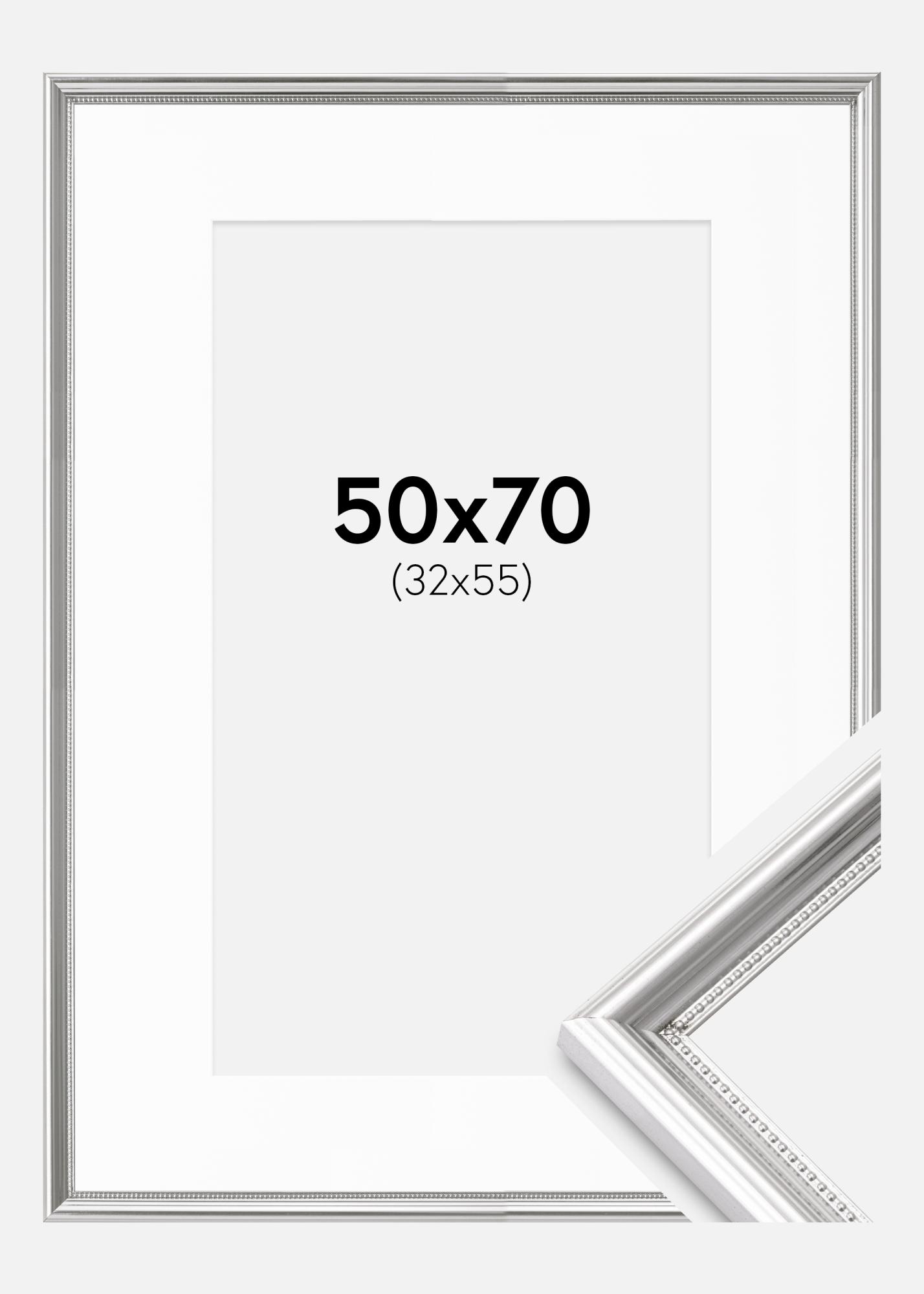 Frame Gala Silver 50x70 cm - Picture Mount White 33x56 cm