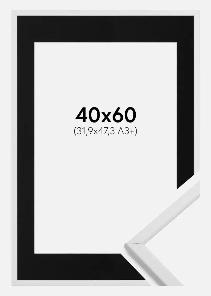 Frame Galant White 40x60 cm - Picture Mount Black 32.9x48.3 cm (A3+)