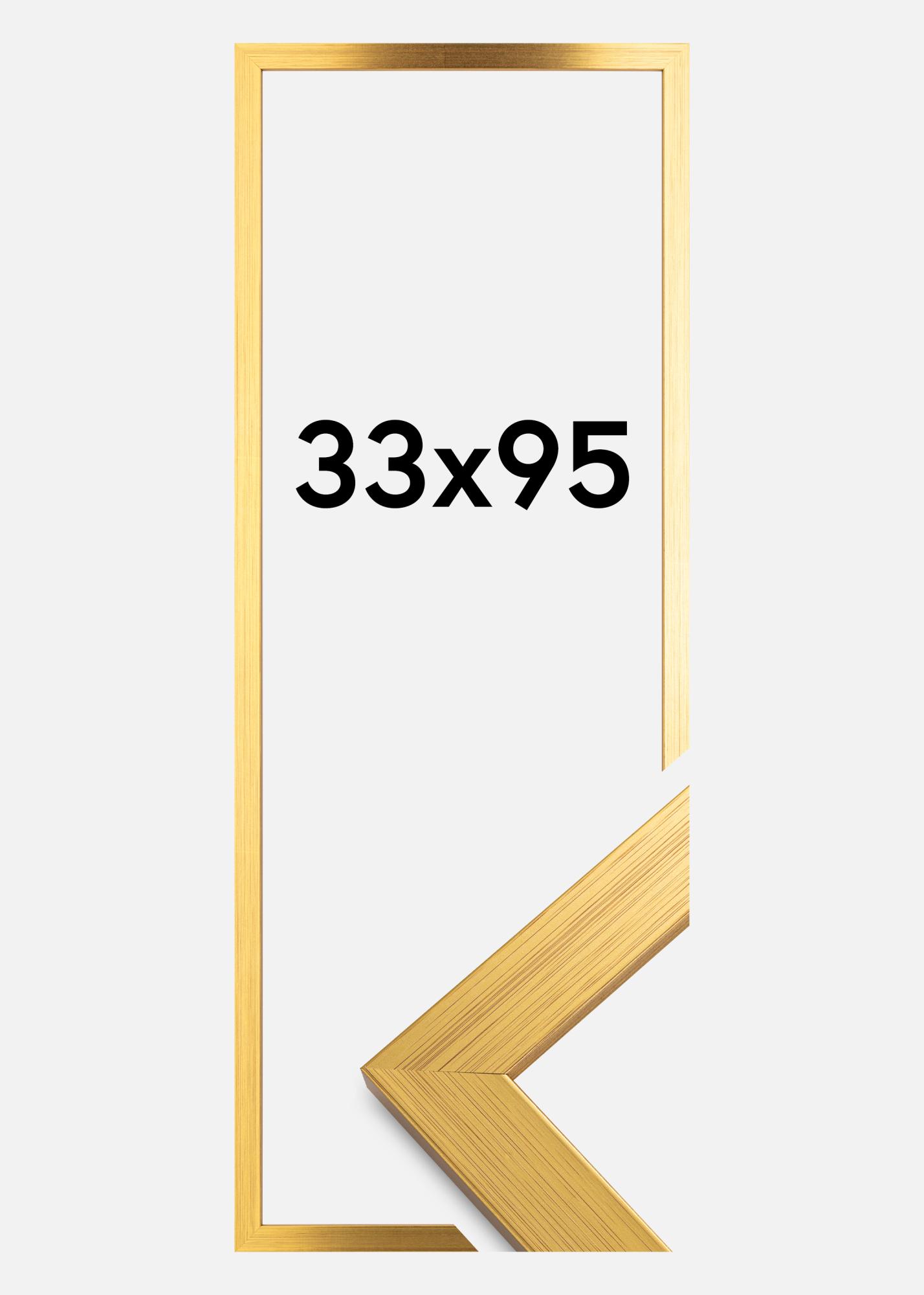 Create a luxurious feel in your home with this elegant 33x95 cm gold-colored gold frame. With its classic design and shimmering surface, it will become a focal point on any wall. This photo frame is not only a stylish interior detail, but also practical thanks to the included metal hangers that allow for both horizontal and vertical hanging.