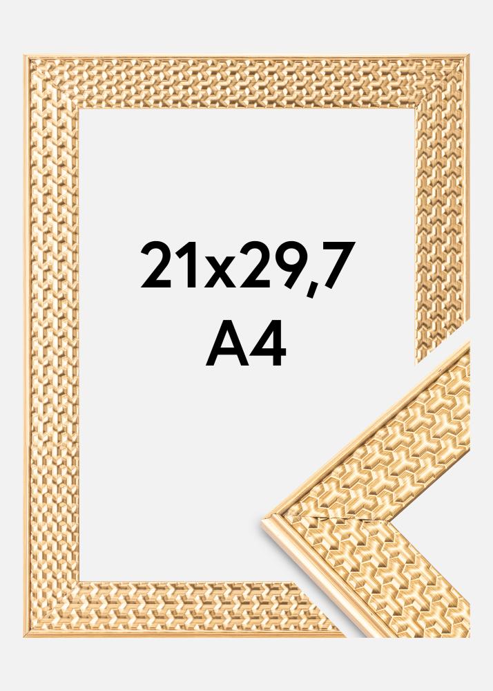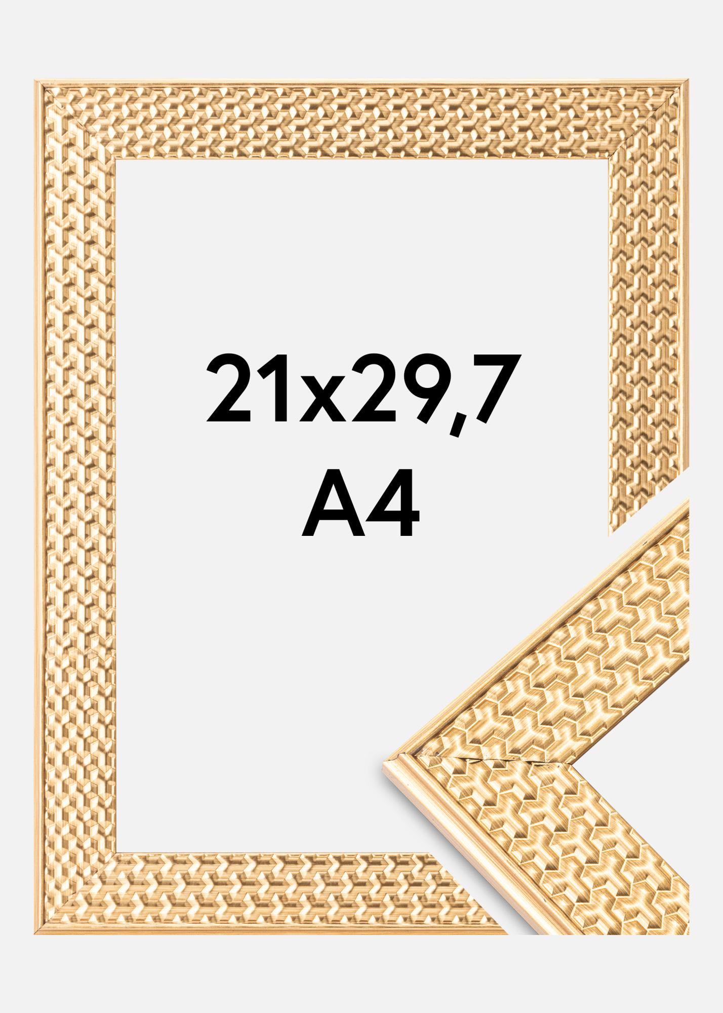 Create a timeless feel in your home with this elegant 21x29.7 cm (A4) gold frame in retro style. With its 35 mm wide frame border, it adds an impressive presence and highlights your chosen artwork or photo in a distinct way. The glossy surface of the frame reflects light beautifully and adds a luxurious touch to your interior.