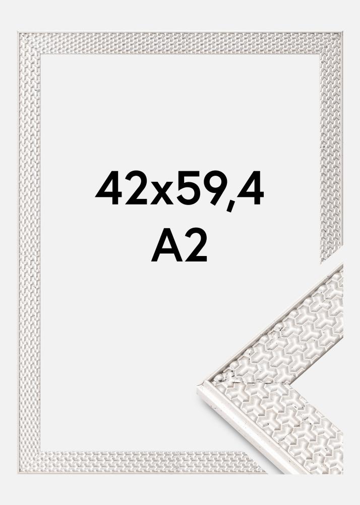 Discover the elegant silver frame in retro style, a photo frame that gives your images a distinct and timeless charm. With its dimensions of 42x59.4 cm (A2), it is perfect for showcasing your favorite artwork or photographs. The 35 mm wide frame adds a powerful presence to the wall, while its glossy surface subtly reflects the light.