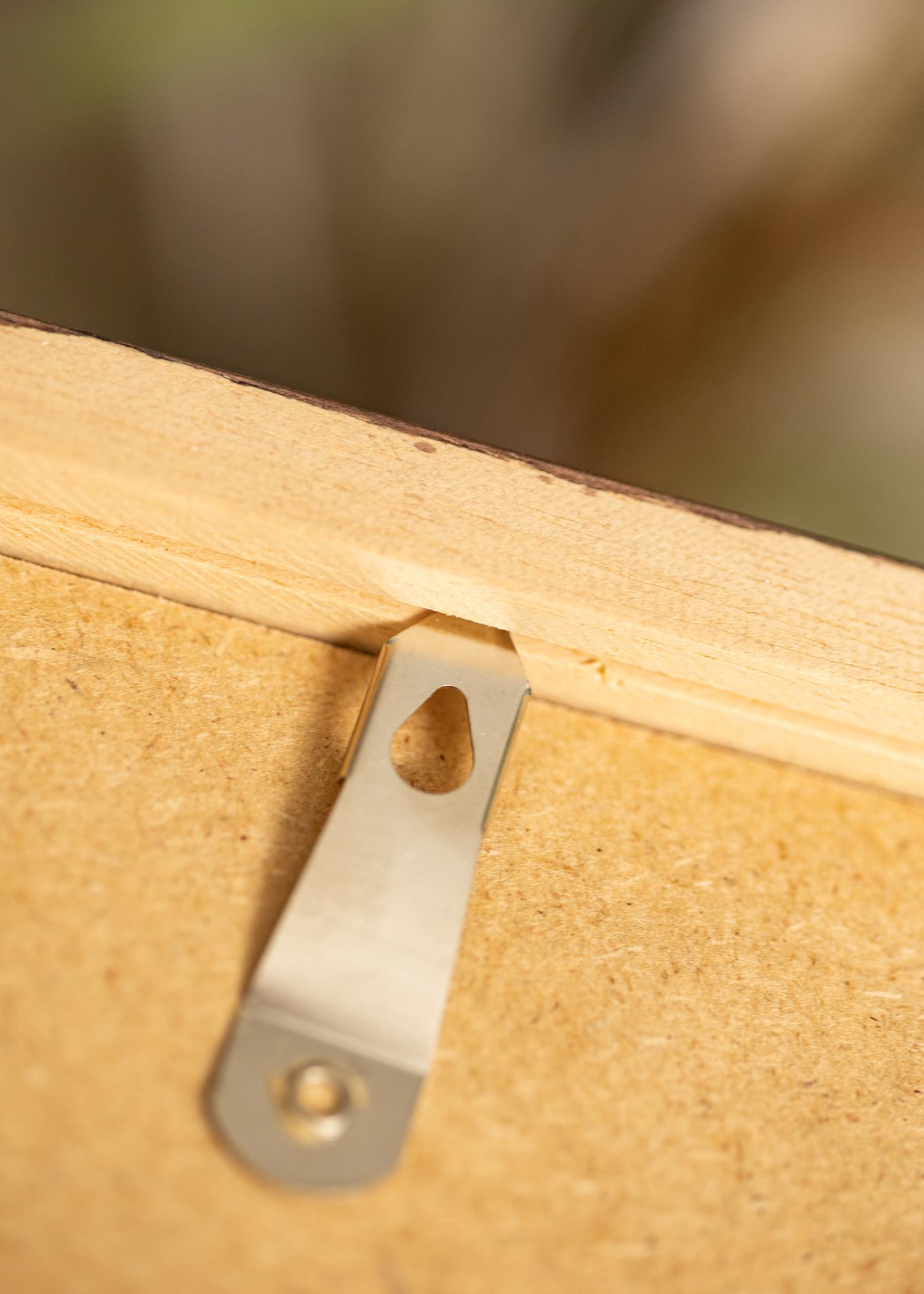 The frame has a width of 19.6 mm and a depth of 25 mm, providing a robust and stable encasement. With outer dimensions of 63x93 cm, this frame becomes an impressive detail on the wall. It is equipped with metal hangers on the back, making it easy to hang both horizontally and vertically, depending on what best suits your space.