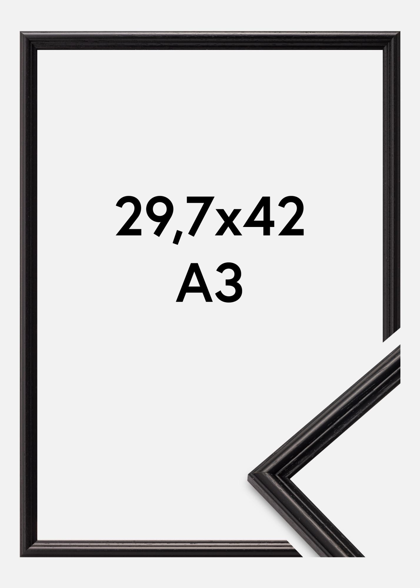 Discover the elegant and stylish photo frame in the size 29,7x42 cm (A3), perfect for showcasing your favorite pictures or artwork. This picture frame is made of robust ayous wood and features a deep black color with a fine painted surface that gives a sophisticated touch to any room.