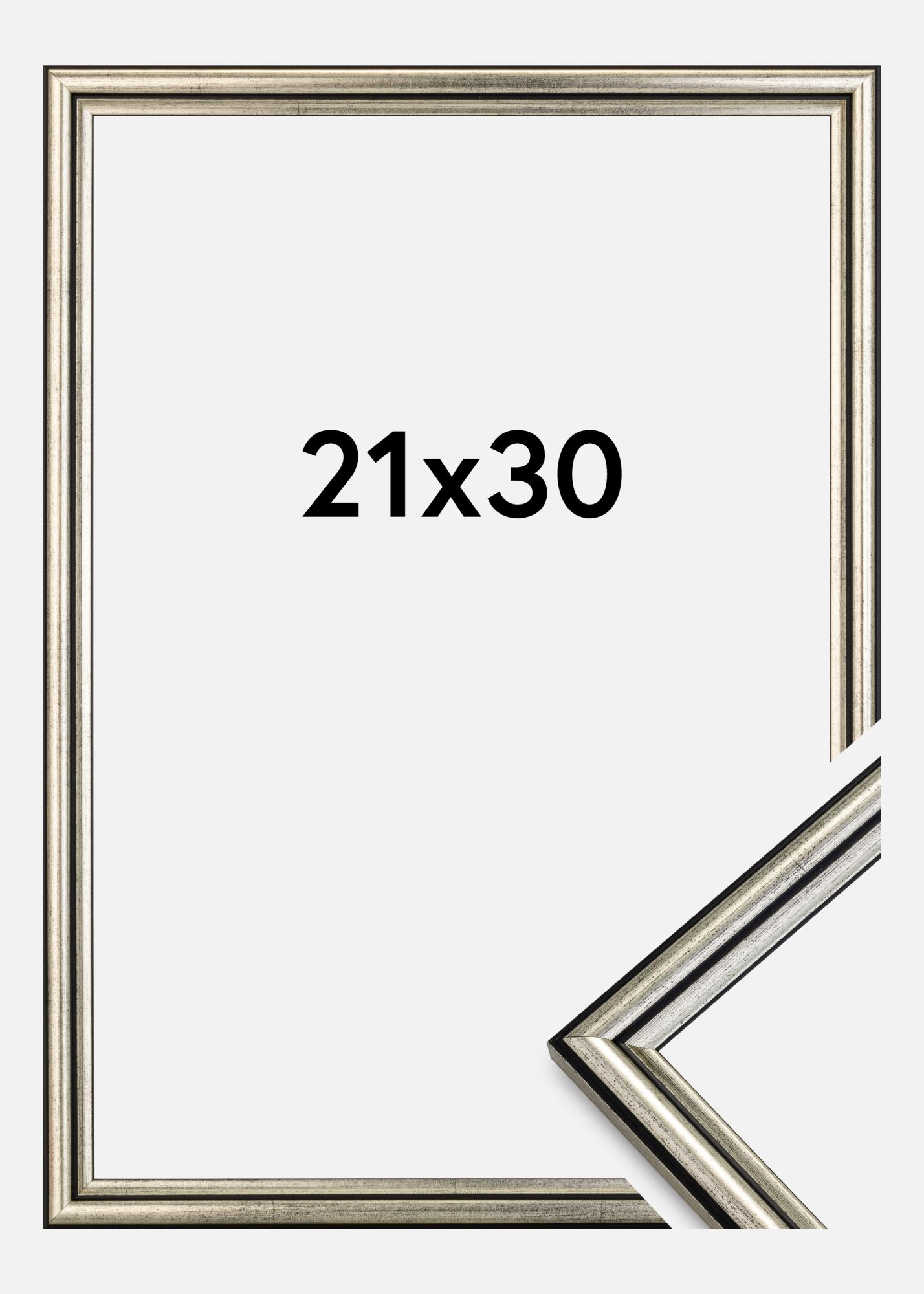 Discover the elegance and sophisticated design of our 21x30 cm silver frame, perfect for showcasing your favorite photos or artwork. This photo frame is a stylish addition to any room, with its speckled silver accents and black lines that lend a unique character.