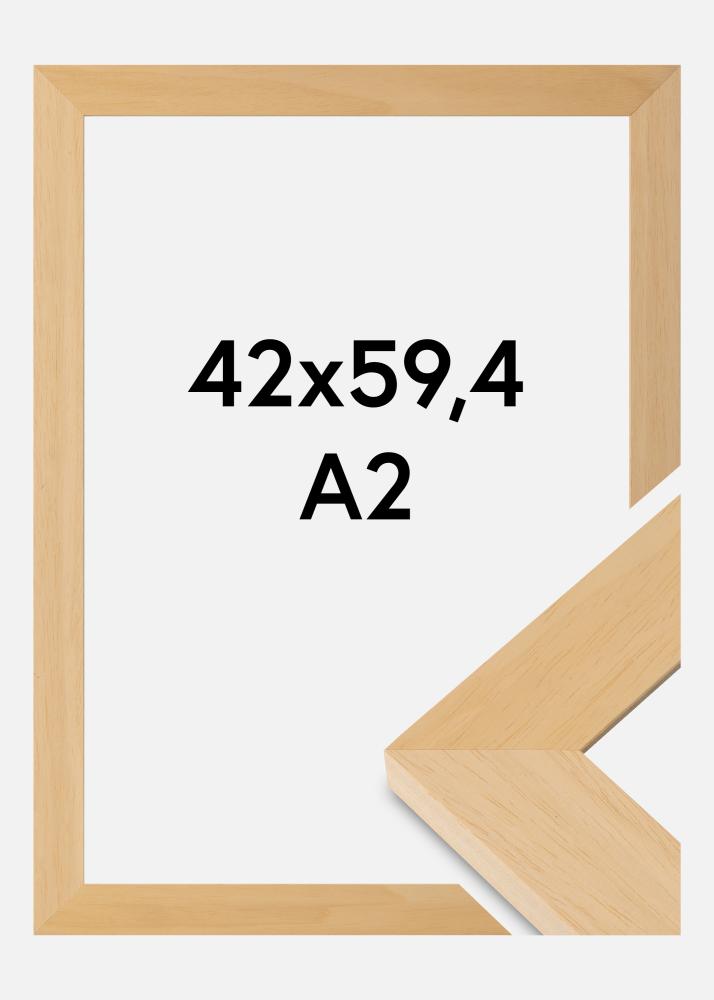 Give your posters and artwork a natural framing with our untreated wooden frame made of ayosträ. with its dimensions of 42x59.4 cm (A2), it is perfect for highlighting your favorite images. The light wooden tone creates an airy and clean impression in the room.