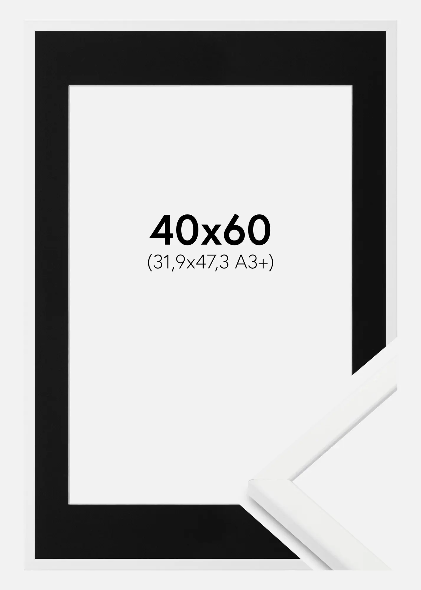 Frame Kaspar White 40x60 cm - Picture Mount Black 32.9x48.3 cm (A3+)