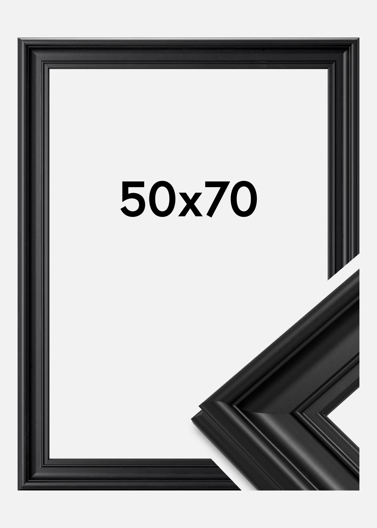 Mora Premium Black is one of our finest photo frames. Made of wood from our wonderful Swedish forests and assembled in our own frame workshop. This means that we can promise a quality above the average. The picture frame has a soft gold-coloured profile in the old-painted style, with a width of 57 mm. Perfect for your finest photos!