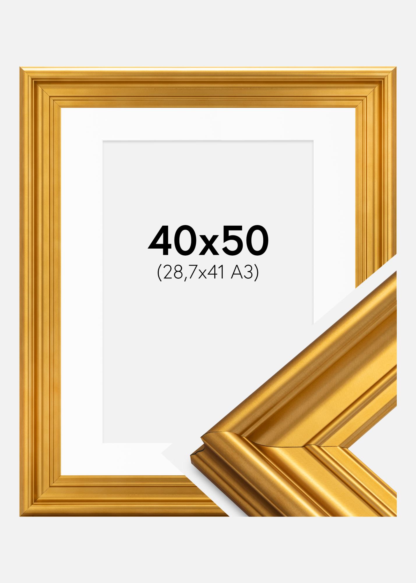 Frame Mora Premium Gold 40x50 cm - Picture Mount White 29.7x42 cm (A3)