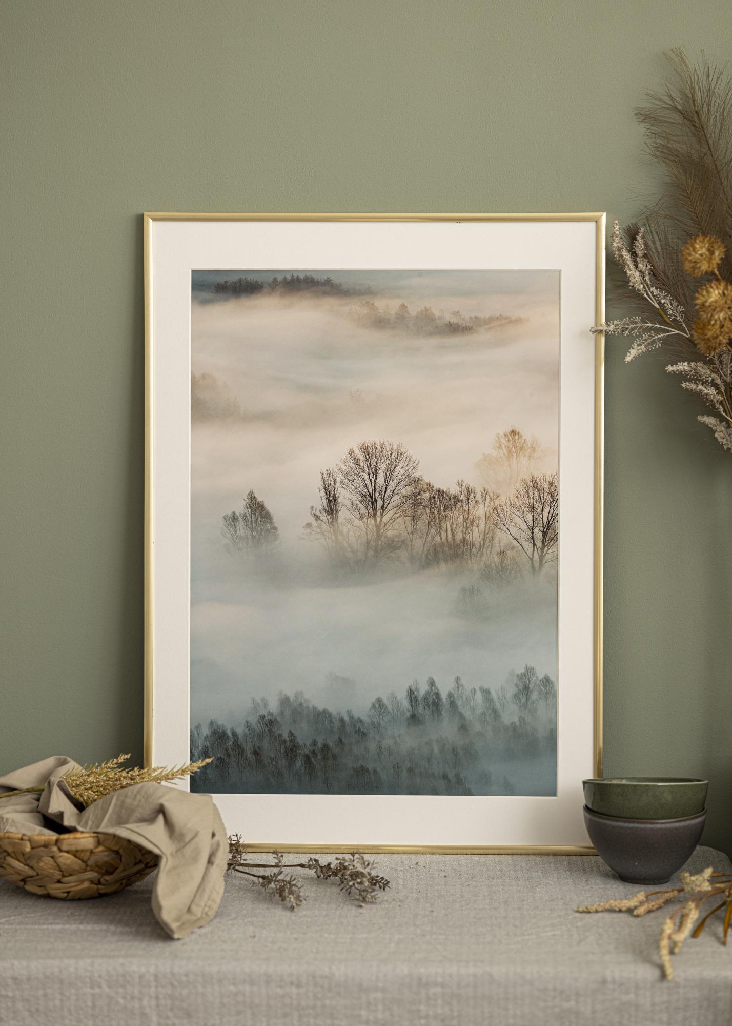 This elegant gold frame comes with a passepartout that fits pictures sized 10x10 cm. The frame's width is 9 mm and depth is 14 mm, providing a sleek and matte finish.
