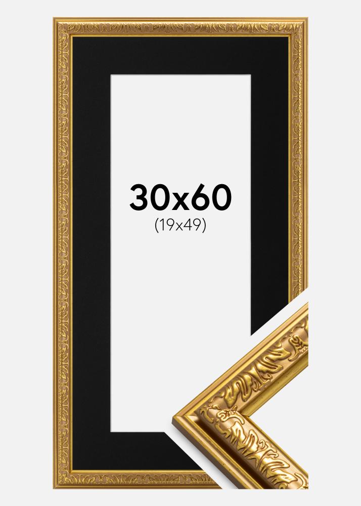 Frame Nostalgia Gold 30x60 cm - Picture Mount Black 20x50 cm