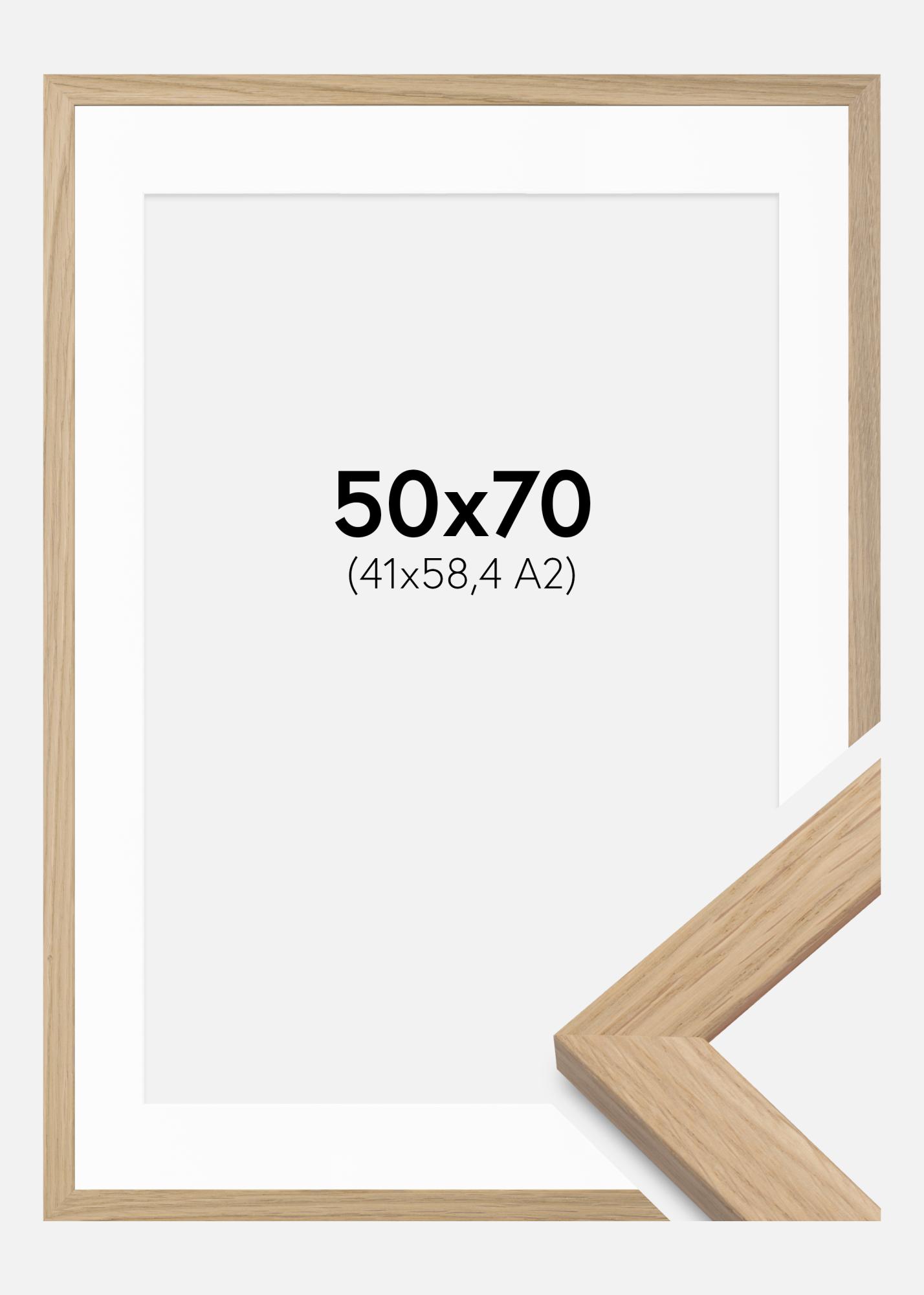 Frame Oak Wood 50x70 cm - Picture Mount White 42x59.4 cm (A2)