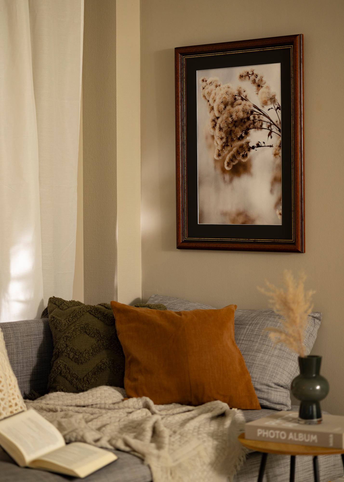 Package including picture frame and matching black mount. The product image shows the dimensions of the frame (indicated in bold) and the inner dimensions of the mount (indicated in brackets). Note that the inner dimensions of the mount should be 1 cm smaller than the image size.