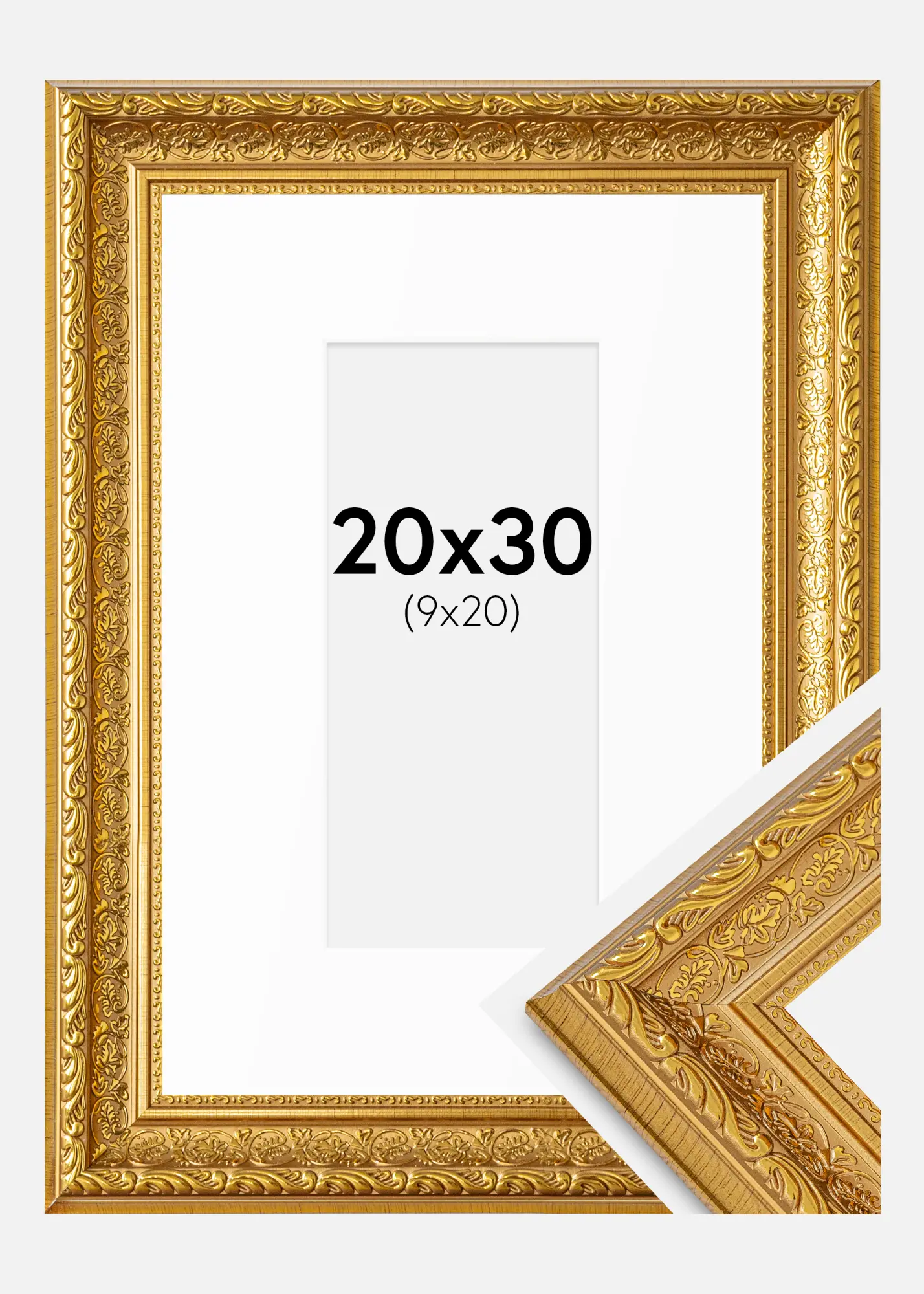 An elegant gold frame can really highlight your favorite pictures and give them a sophisticated framing. This frame has a width of 39 mm and a depth of 25 mm, which provides a stable and robust feel. With outer dimensions of 26.6x36.6 cm, it is perfect for framing pictures in the size of 10x21 cm.