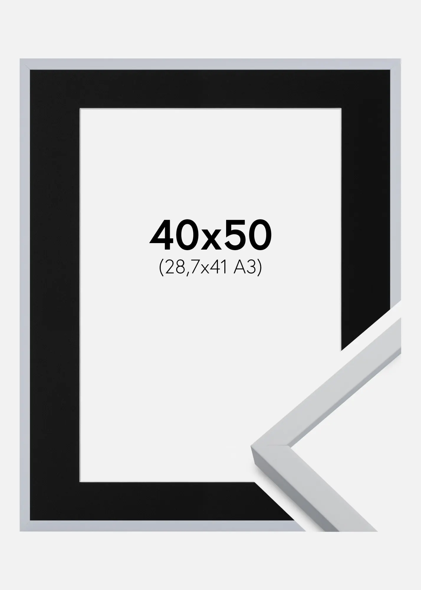 Frame Oslo White 40x50 cm - Picture Mount Black 29.7x42 cm (A3)