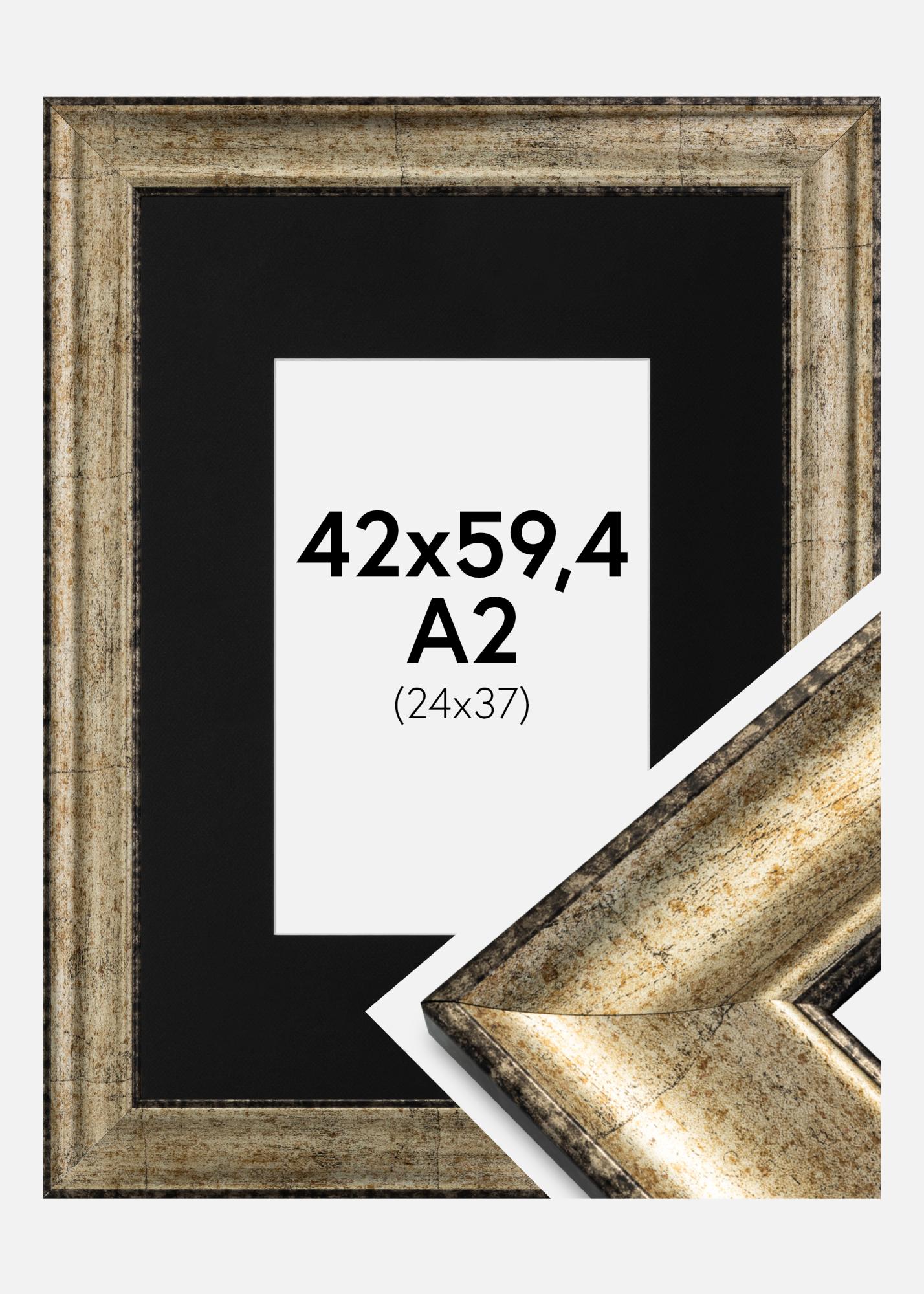 Frame Saltsjöbaden Antique Gold 42x59.4 cm (A2) - Picture Mount Black 25x38 cm