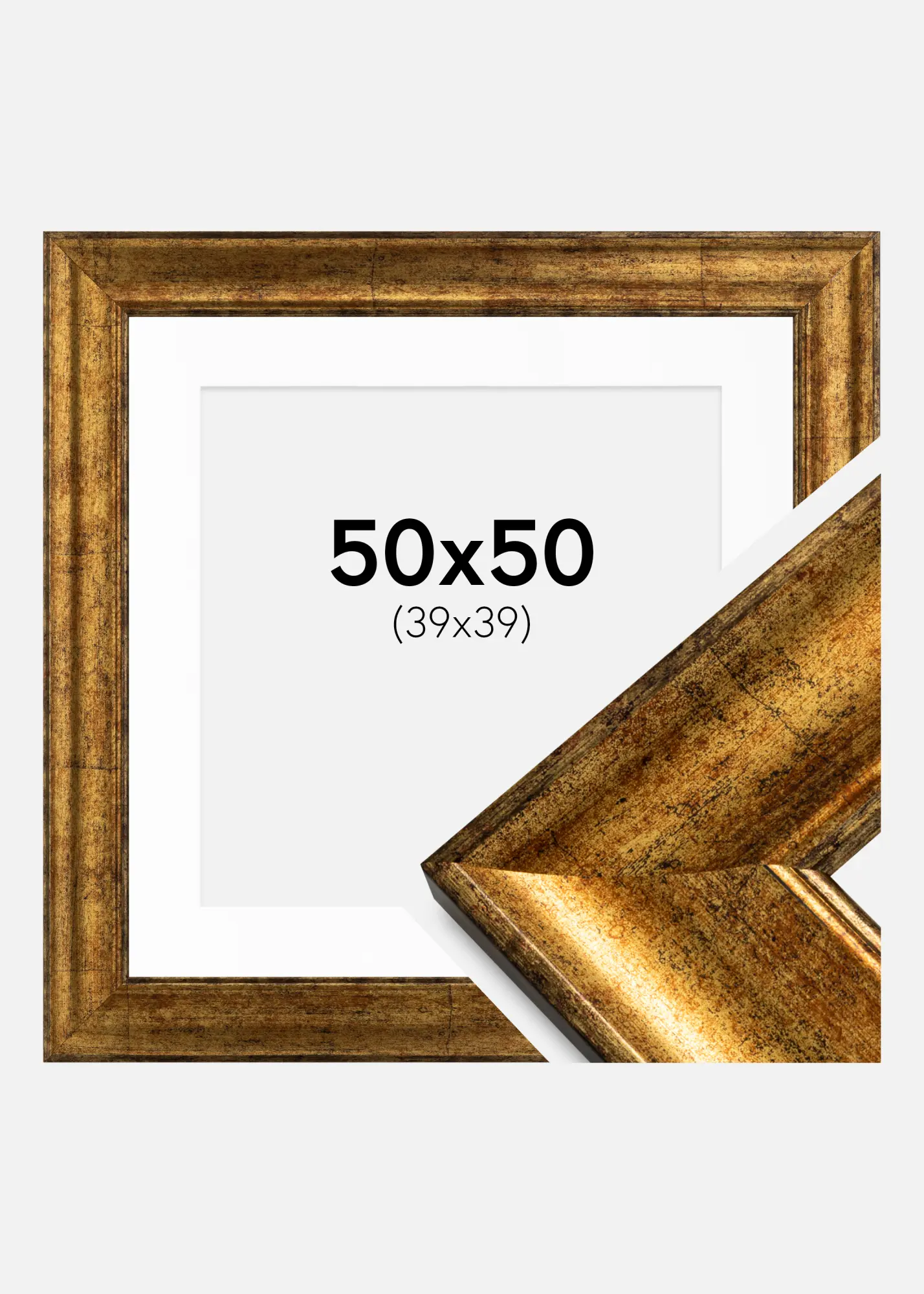 Frame Saltsjöbaden Gold 50x50 cm - Picture Mount White 40x40 cm