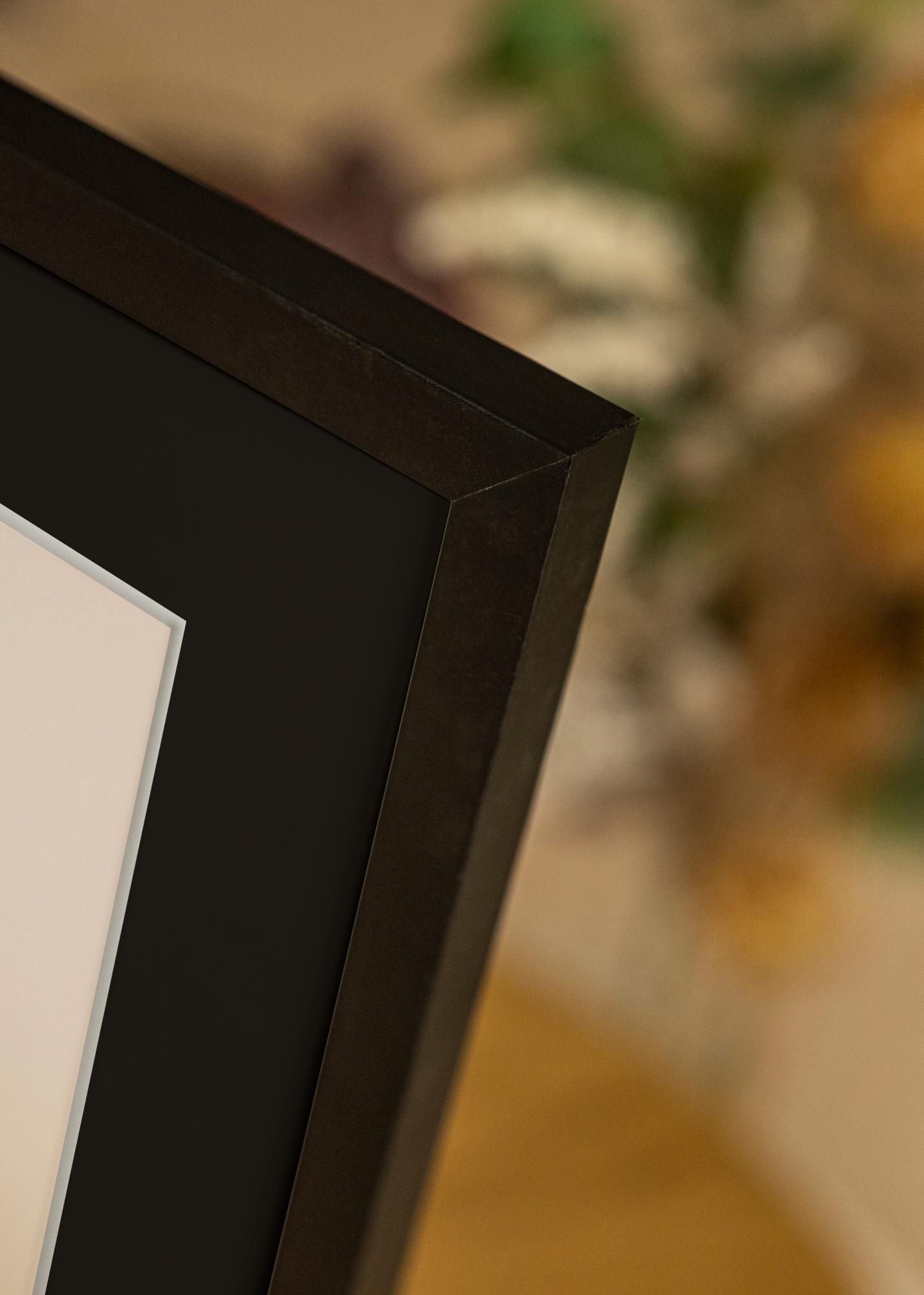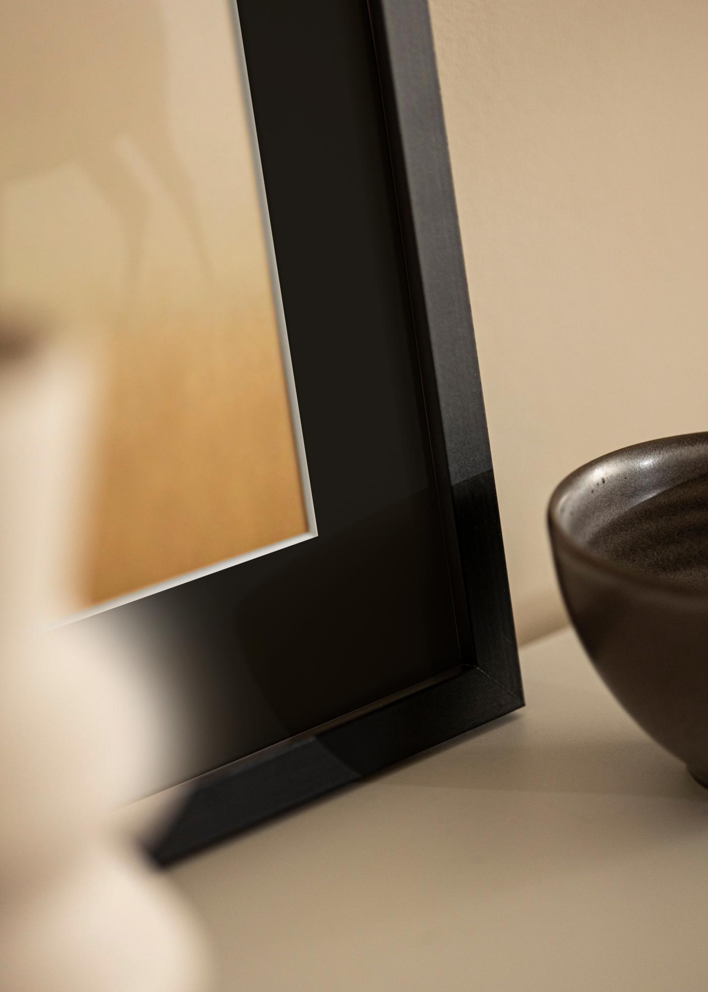 Package including picture frame and matching black mount. The product image shows the dimensions of the frame (indicated in bold) and the inner dimensions of the mount (indicated in brackets). Note that the inner dimensions of the mount should be 1 cm smaller than the image size.